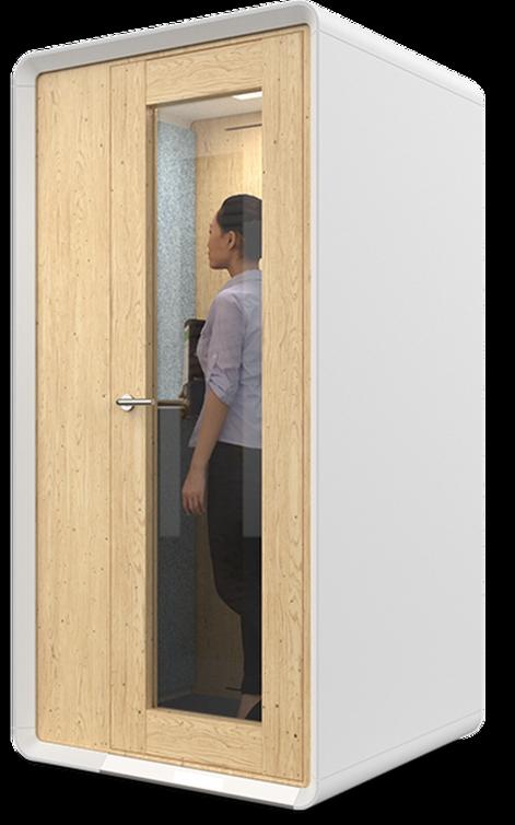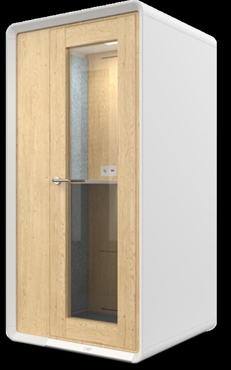 Noch nie ging Büro so kompakt. Die neue Telefonbox punktet mit jungem Design und wird mit hochwertigen Holzelementen zum Mini Office mit Wohlfühlflair. Clevere Features ermöglichen im Tim ungestörtes Arbeiten und Videocalls auf Augenhöhe.