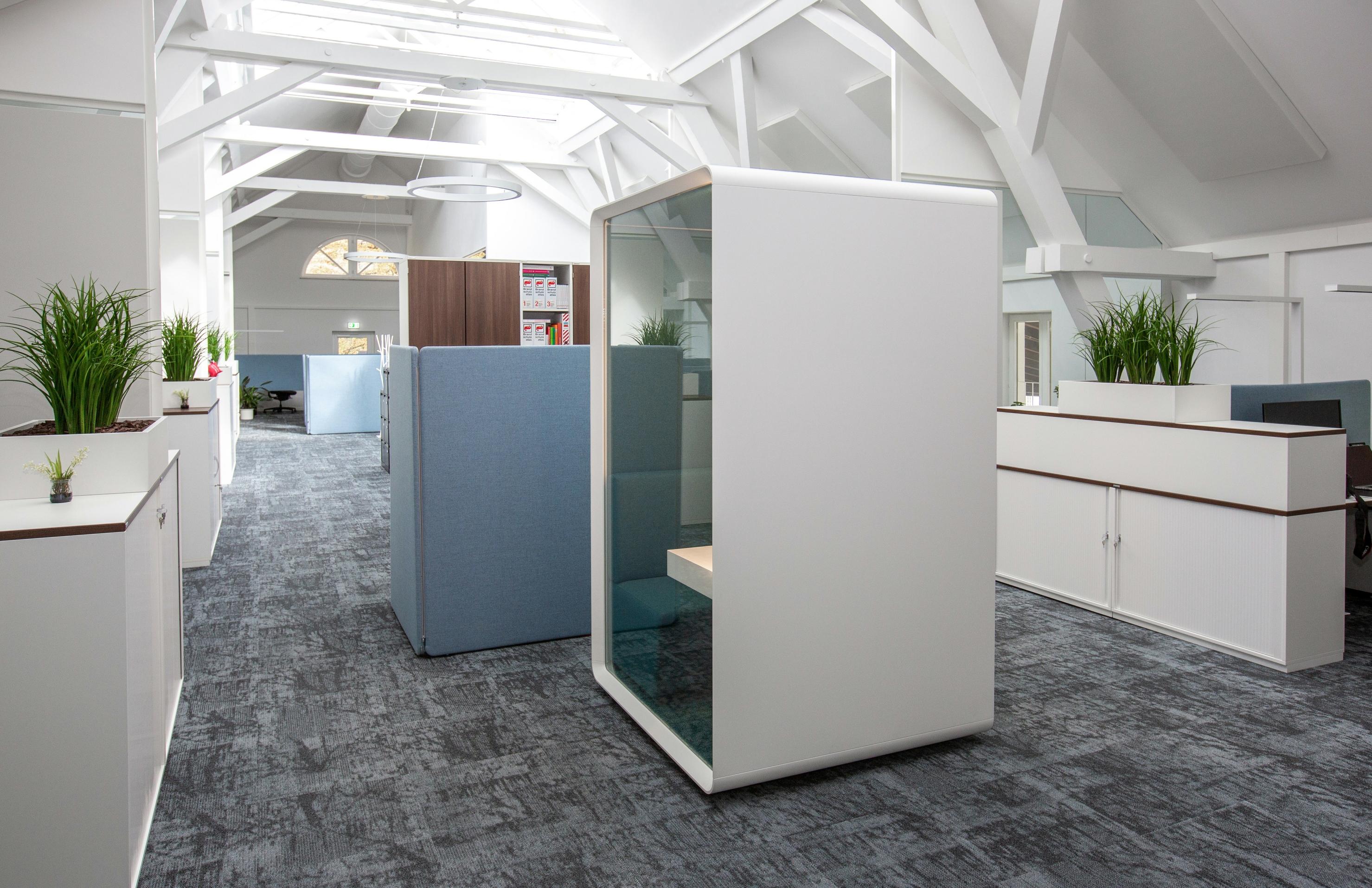 Flexibler Rückzugsort im Open Space. Entlärmen Sie Ihre Büroetage und schaffen Sie mit der Quiet Box Serie eine Atmosphäre und Ruhe.