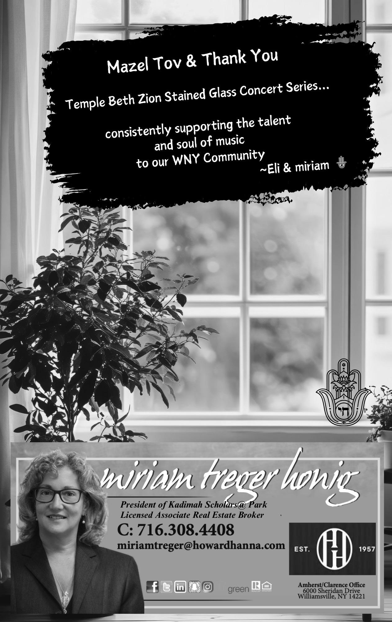 The Stained Glass Concert Series is more than a stage for extraordinary music—it’s where Buffalo gathers, connects, and feels renewed. Framed by the radiant stained glasswork in the Temple Beth Zion Sanctuary, these concerts—produced by Temple Beth Zion and spanning genres from classical to Broadway—bring together the diverse voices that make our city shine. Through music, we uplift spirits, strengthen community, and celebrate the harmony that unites us.