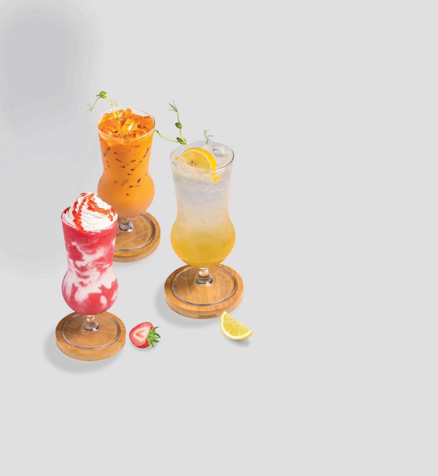 We o er a variety of co ee drinks for an invigorating start to your day, along with refreshing non-ca einated options to quench your thirst and complement your meal