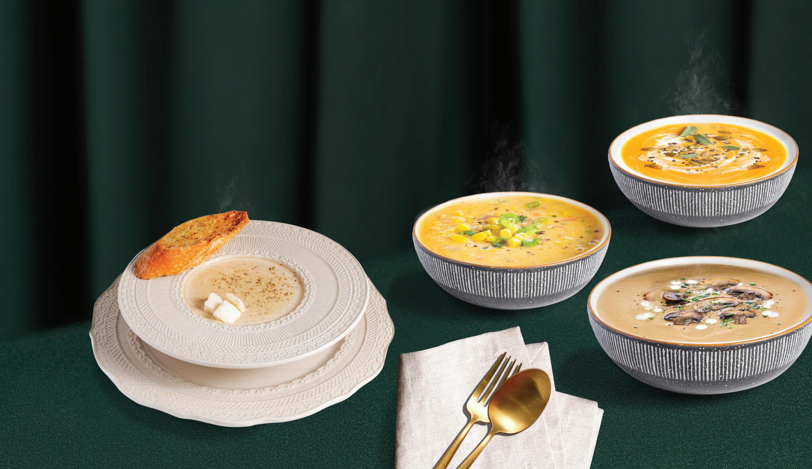 Our skillfully crafted soups are a symphony of avor, aroma, and warmth. They're the perfect way to start any meal or simply enjoy a cozy moment.