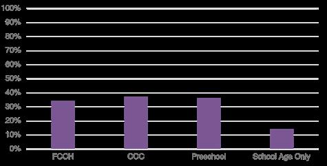 Taking all this information together, the survey response from urban areas and school age only centers was lower than in rural areas and family child care homes, child care centers, and preschools. It is recommended that efforts be taken with future surveys to increase the response rate, and in particular to increase responses from urban areas and school age only centers.