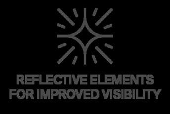 Reflective elements that glow when illuminated. the product is not intended for use as High Visibility Personal Protective Equipment.
