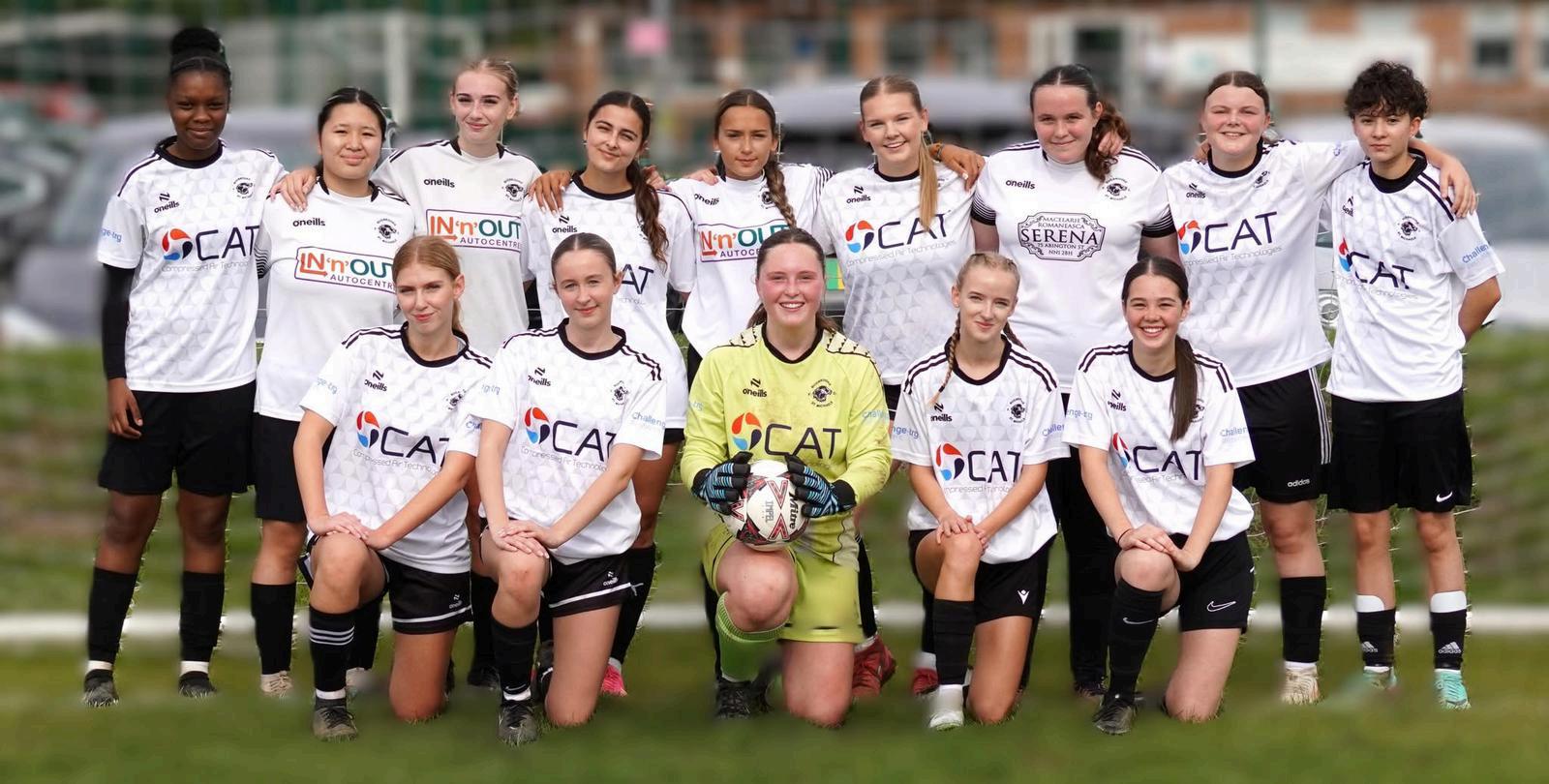 Despite losing 15 players at the end of last season, mostly due to players becoming too old, the squad is still 18 strong and has started the season impressively They have won all four of their matches so far, and currently sit top of Div 1 of the newly formed Northants Women’s & Girls Football League.