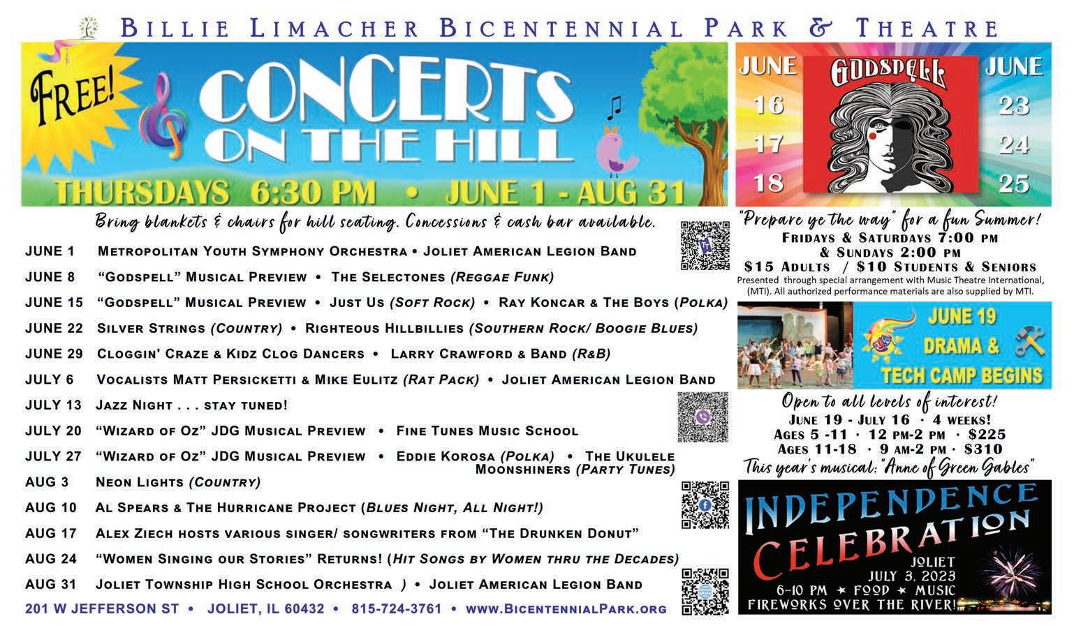For more information, contact Billie Limacher Bicentennial Park: www. bicentenialpark.org, bipark@joliet.gov and 815-724-3761