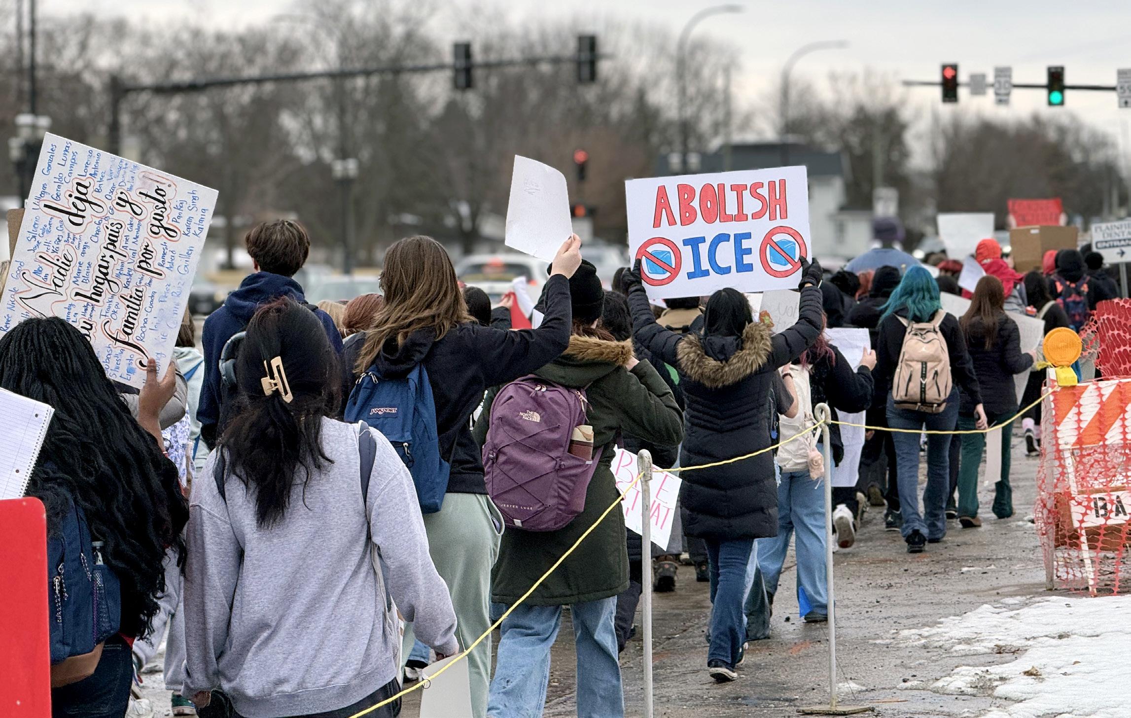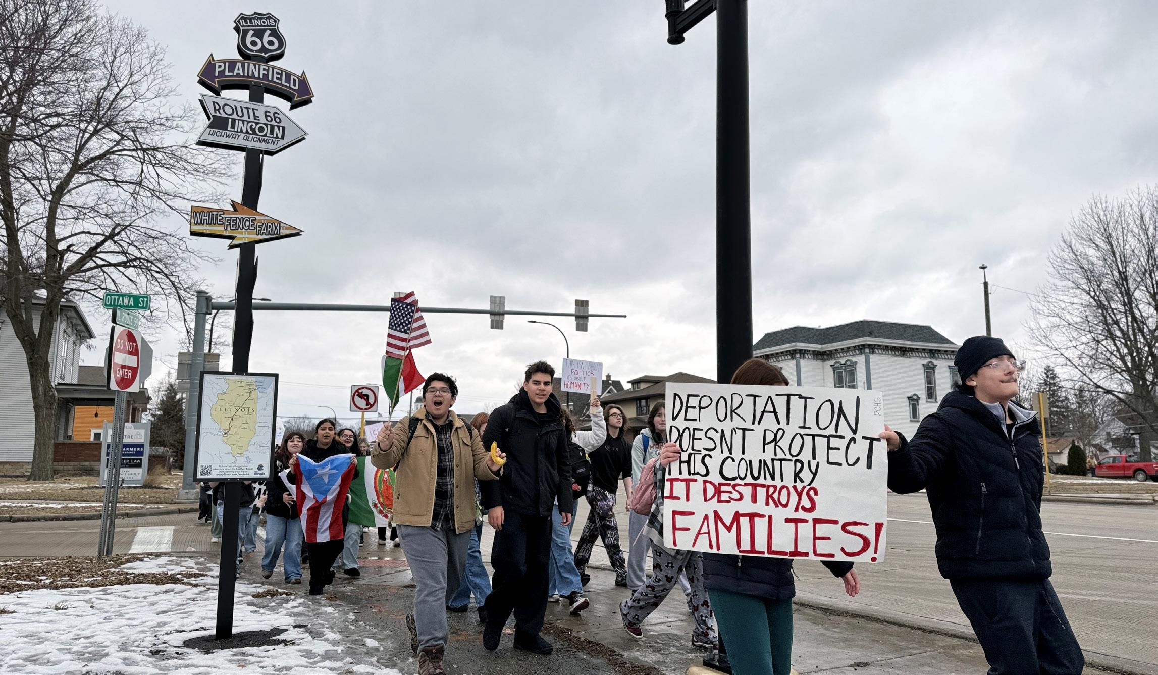 Students from Plainfield High School gathered in downtown Plainfield this week to voice their concerns over federal immigration enforcement policies, staging a peaceful protest that drew attention from residents, local leaders and passing motorists.