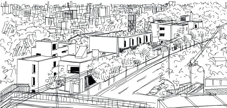 During the pandemic, I started experimenting with alternative modes of graphic representation and became interested in architectural collages combined with vegetation and fashion. Learning a new skill pushed me creatively to think outside of the box and enriched my way of expressing designs. I have a strong skill base in technical programs, and this project made me develop a more spontaneous side of creating.