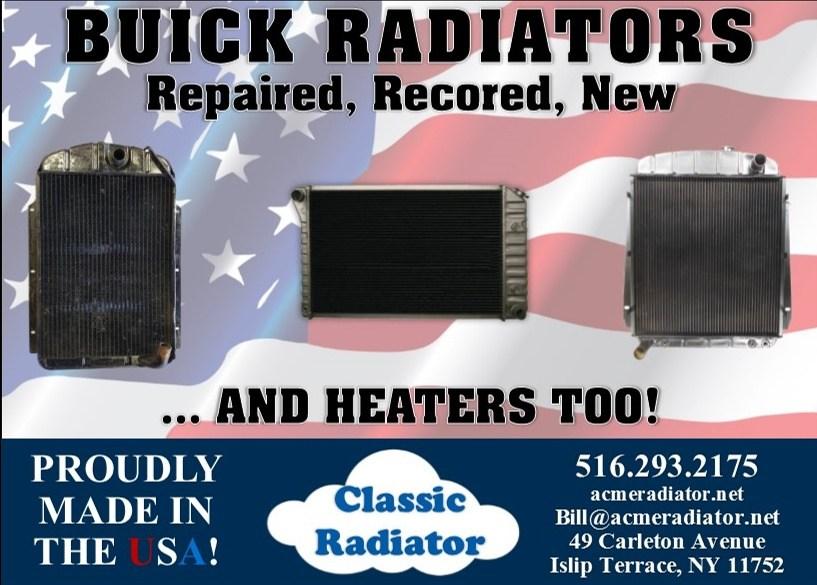 Rebuild Services for Buicks: 1942-1963 Heater control valves, 1949-1960 Heater cores, 1937-1972 Water pumps, 1952-1972 Power steering pumps, 1952-1972 Power steering gear boxes, 1935-1954 Knee action front and rear shock absorbers, 1937-1972 Distributors, 19371972 Distributor vacuum advances, 1955-1964 Power Brake assemblies, 1940-1964 Starters, 1940-1962 Generators, 1949-1958