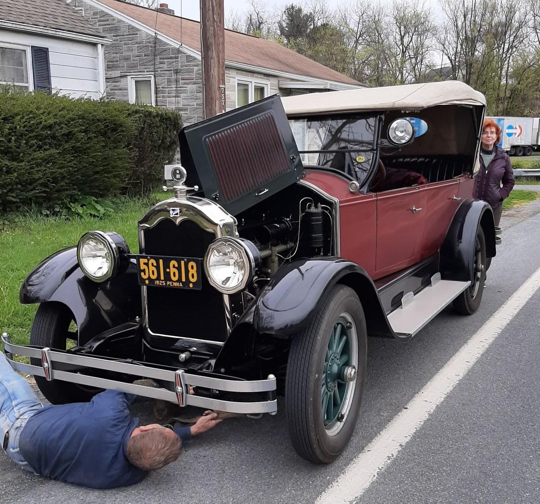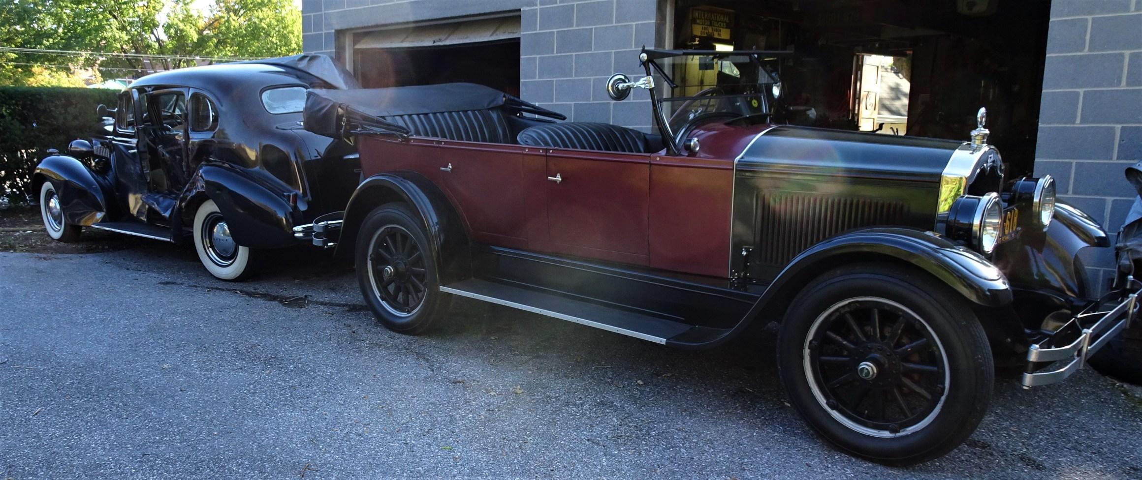The two 1925 touring cars owned by Larry DiBarry. Get an update on both cars in this issue, beginning on page 23.