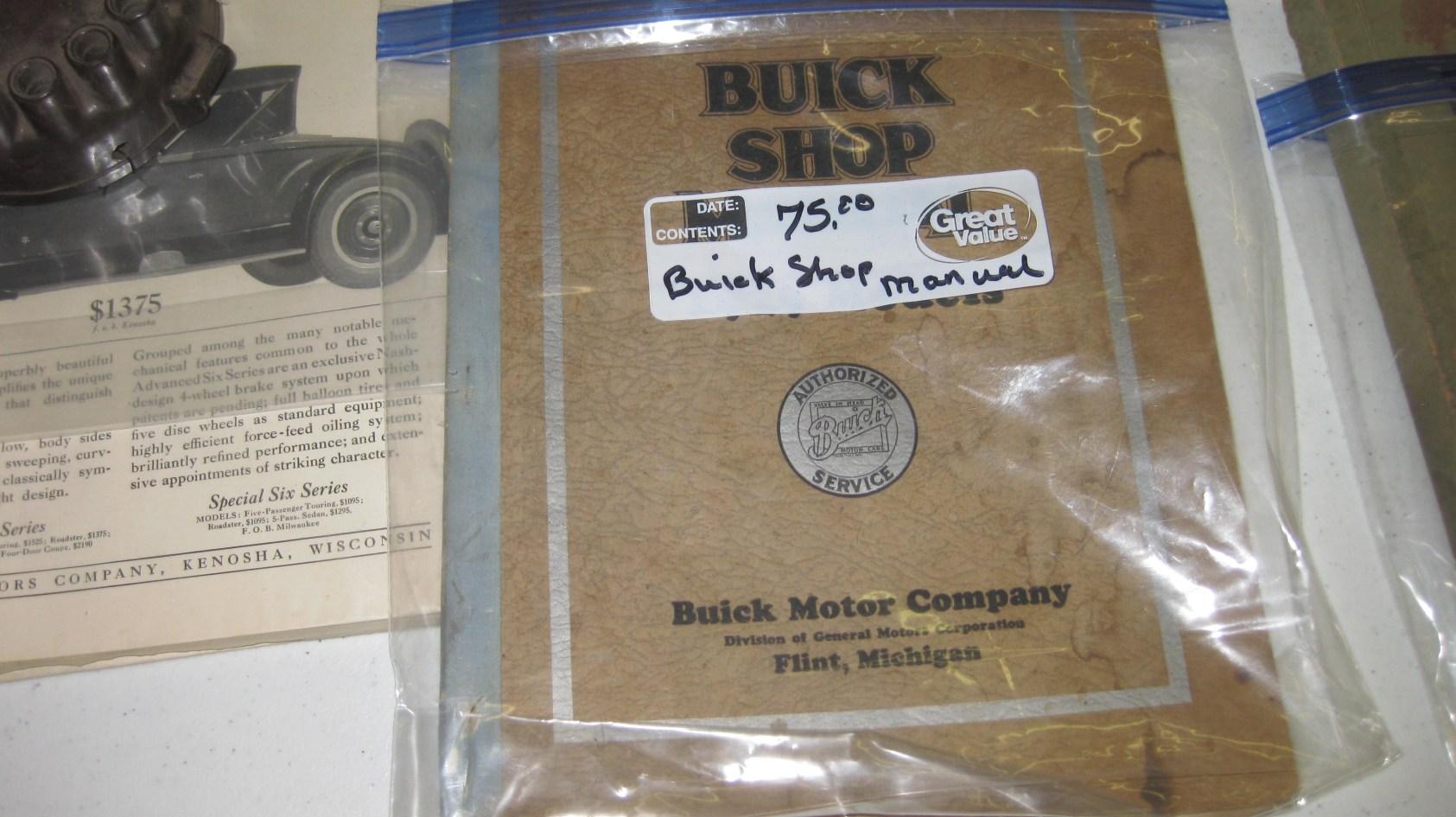 All 1941 Buick: Original Owner’s manual, mint. Shop Manual, new reprint. Fisher Body Manual, new reprint. Original Flat-Rate Manual. Thompson Repair & Tune-Up