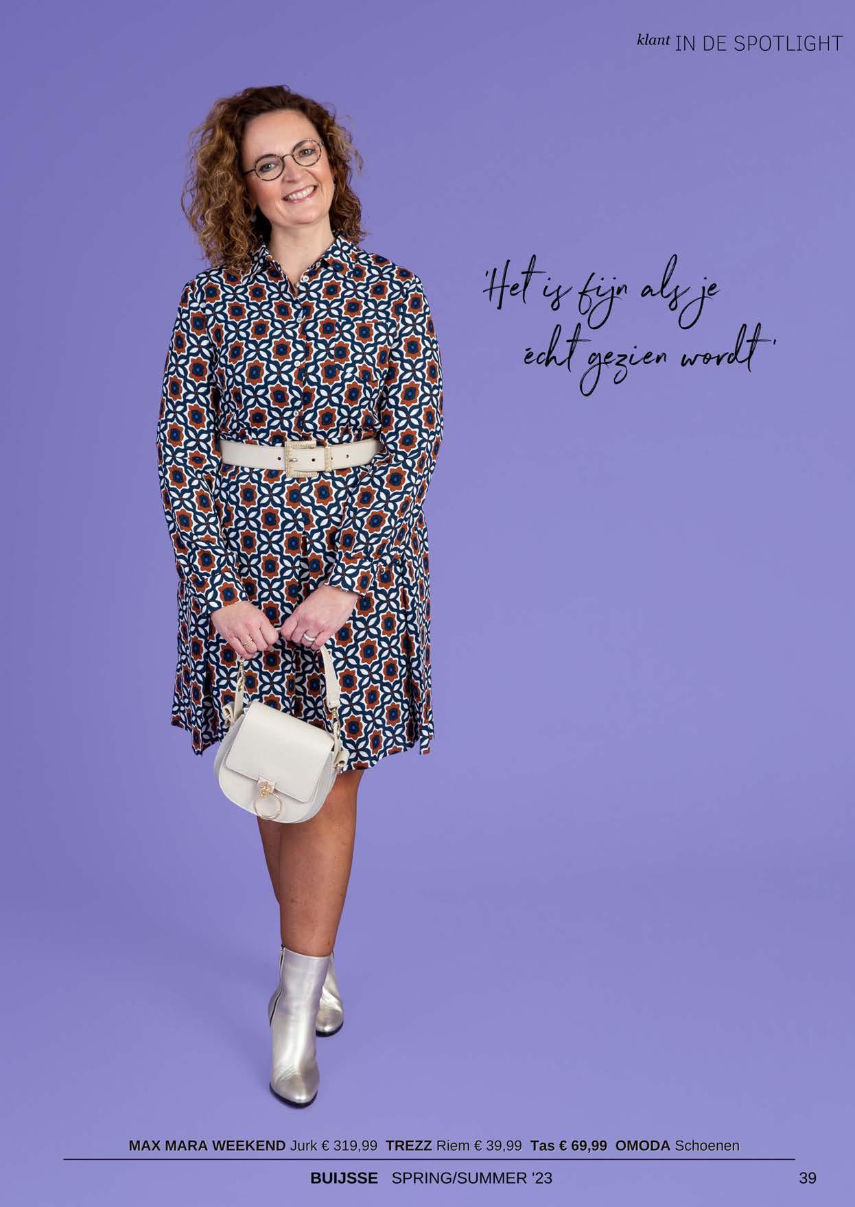 ‘Elke zaterdagmiddag start ik bij Buijsse met een heerlijk bakje koffie. Mijn persoonlijke styliste is Heleen, zij kent mijn kledingstijl en dat geeft vertrouwen. Als ze bij de inkoop iets heeft gezien wat helemaal bij mij past, vertelt ze me dit ook enthousiast. Dat vind ik erg leuk, daardoor voel ik mij als klant ook echt gezien.’