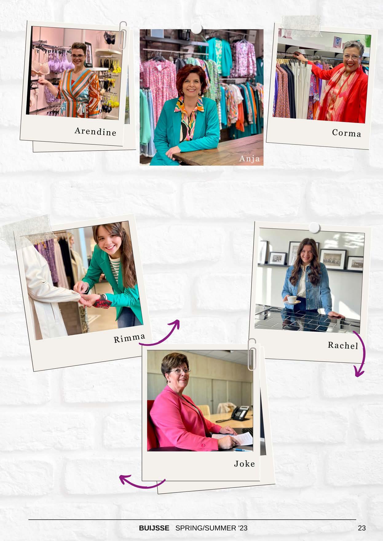 Dit zijn verkoopstylistes Arendine (Lingerie en Badmode), Anja (Damesmode Begane Grond) en Corma (Damesmode Eerste Etage). Het geven van persoonlijk advies staat bij hen centraal, vanzelfsprekend met een grote glimlach. Arendine: ‘Klanten geven zich vaak letterlijk en figuurlijk bloot, ze moeten dan kunnen vertrouwen op een deskundige aanpak’.