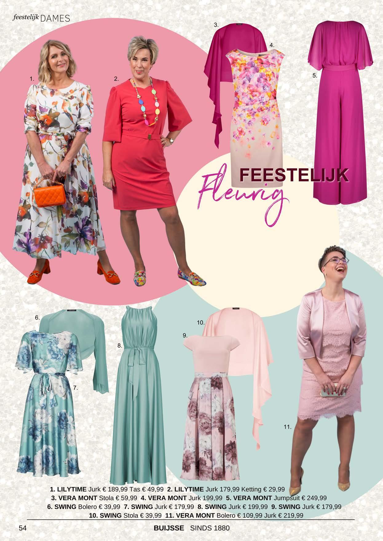 Prachtige bloemdessins zorgen voor een fleurige outfit en met een feestelijke uitstraling. Ga voor knallend in roze of koraal of kies voor zachte pasteltinten. In de winkel vind je een uitgebreide collectie lange en korte jurken, jumpsuits, stola’s en kortje jasjes voor jouw partylook!
