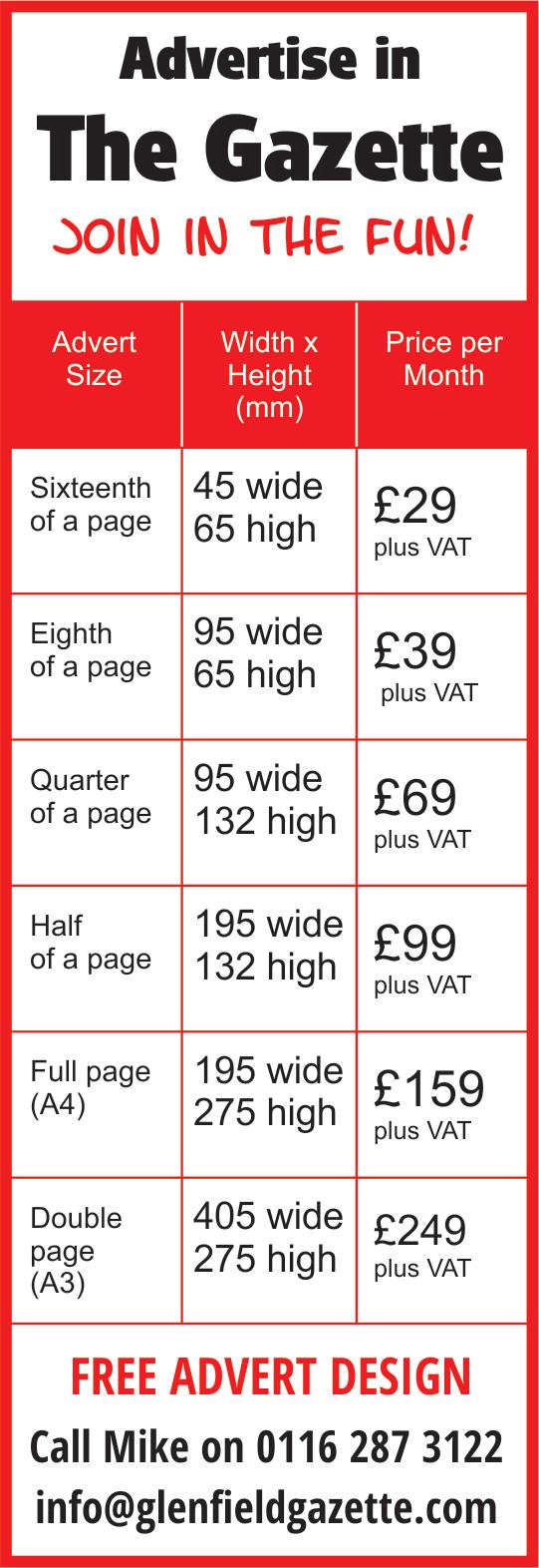 Tel: 0116 287 3122 • Email: info@glenfieldgazette.com • Web: www.glenfieldgazette.com