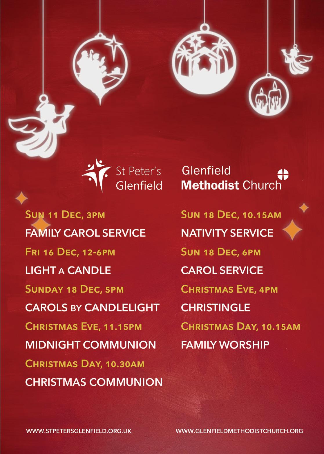 This is an informal celebration of the festive season and to get you in the mood for ‘what is to come’. We are welcoming again members of Ratby Youth Band who will provide the accompaniment. The start time is 4.00pm and the finish time depends on how cold it is. (In really cold weather everyone seems to sing faster so they can return to their warm homes.) Wrap up warmly, bring a torch to read the carol sheets and you will be rewarded afterwards with a warm fruit punch and seasonal nibbles. Any donations of mince pies, etc would be welcome.