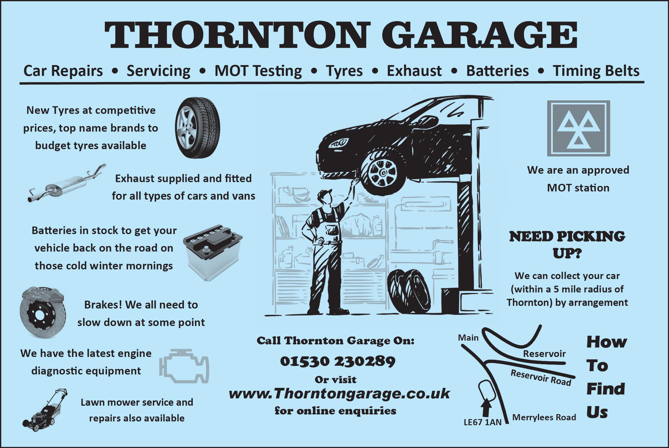www.radfieldhomecare.co.uk Companionship Care continuity Wellbeing Live-in care "The carers I met were so supportive, kind and helped me to regain my independence." -P.S. (client) 01530 639 060 Call us for a chat about care Radfield Home Care, Unit 8 & 9, Ark Business Centre, Loughborough LE11 1JP source: homecare co uk Assistive technology Consistent care team Medication support Housework & laundry THORNTON GARAGE Car Repairs • Servicing • MOT Testing • Tyres • Exhaust • Batteries • Timing Belts