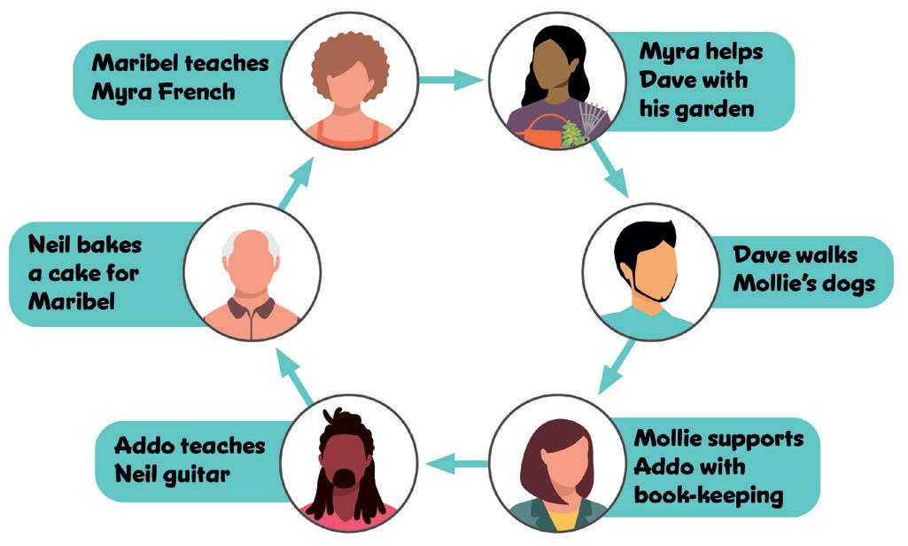 In return, you could learn something new, get support with skills such as playing the guitar or bike maintenance or be introduced to a new sport.