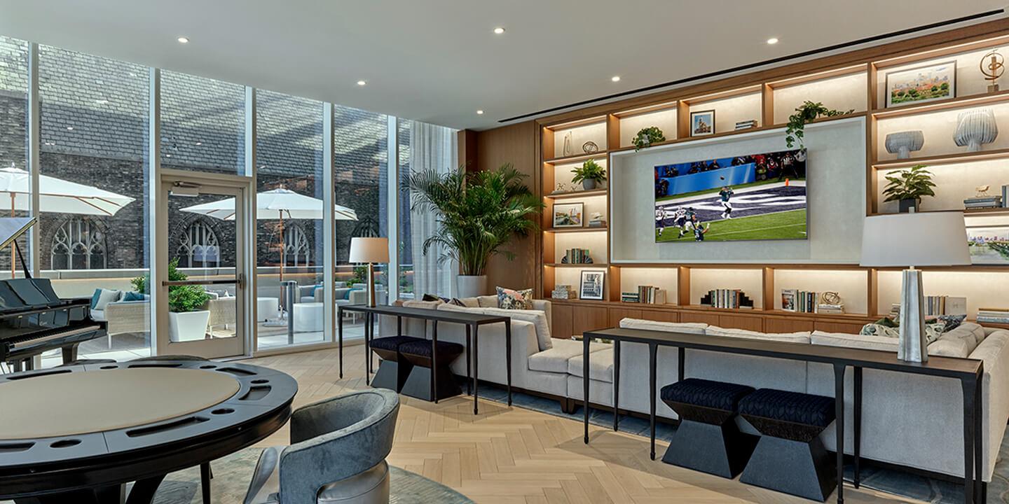 The goal recently has been to minimize the leasing footprint and the transactional experience of sitting down across a desk from someone, so as soon as potential residents walk in, they’re experiencing the club space and the co-working spaces. At the end of the day, the manager can lock up the small leasing area, and the rest of the space is available to residents 24/7. PAIGE BYRD, THIEL & THIEL