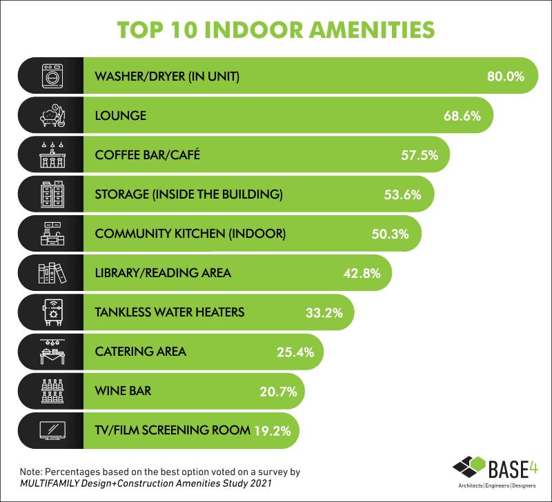 • Common space amenities become more important for work, play and relaxation; rising amenities include commercial areas (office, playroom, movie theater, gym, convenience store) coming into the development.