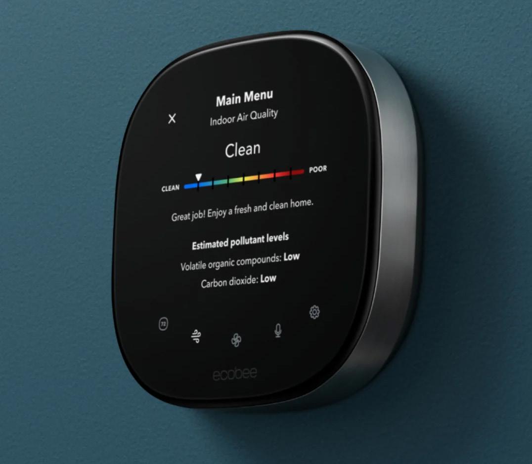 The new Ecobee Smart Thermostat Premium has accurate sensors to detect presence and motion. The millimeter-wave sensor can tell the difference between a pet and a person. It also measures air quality for VOCs and carbon dioxide. If either the CO2 or VOCs reach a set level, the new Ecobee can turn on other devices such as a ventilator or dehumidifier wired to your HVAC to mitigate problems. Even if you don’t have a device like that, you’ll still get air quality alert notifications.