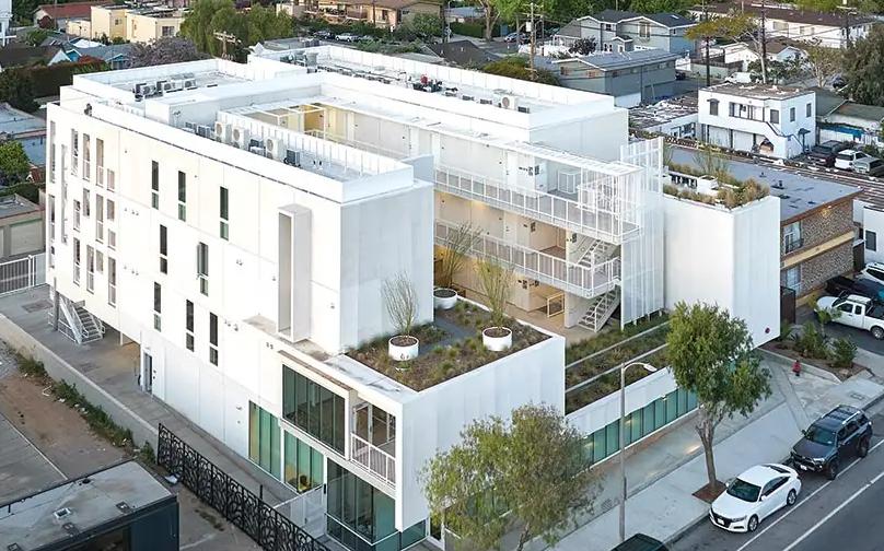Brooks + Scarpa designed the Magnolia apartments in Los Angeles for more compact, responsible urban living. It is a new model of mixed-use which includes both workforce and market-rate housing.