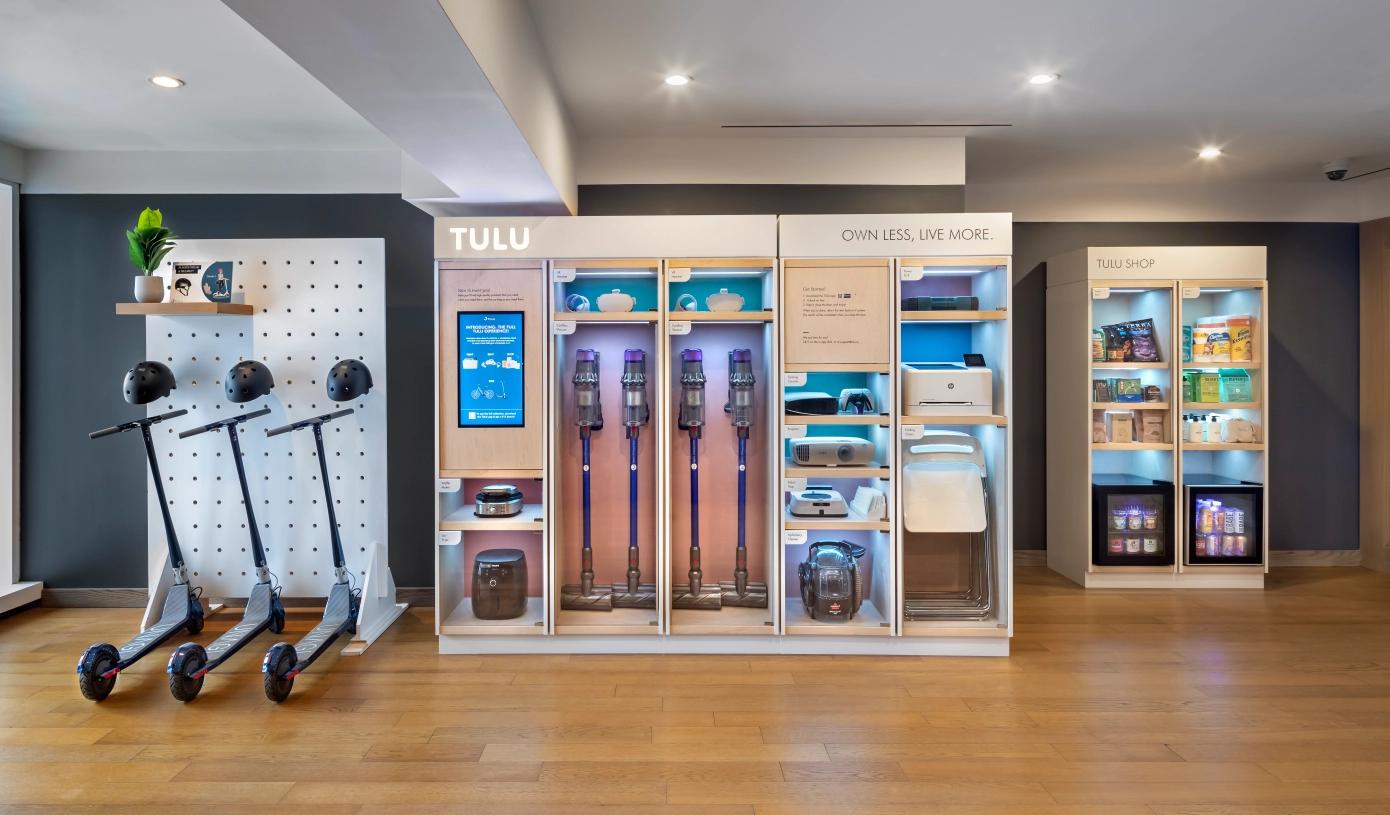Tulu provides on-demand rentals of home products and household items and offers micro-bodega style self-serve shops. The company’s product uses a bit of wall space in the lobby, lounge or laundry room in its buildings, and offers 24/7 access to products, including vacuum cleaners, e-scooters, bikes, VR headsets, etc. The product selection is customized to the needs and wants of the building occupants, who can rent or buy products through the Tulu app.