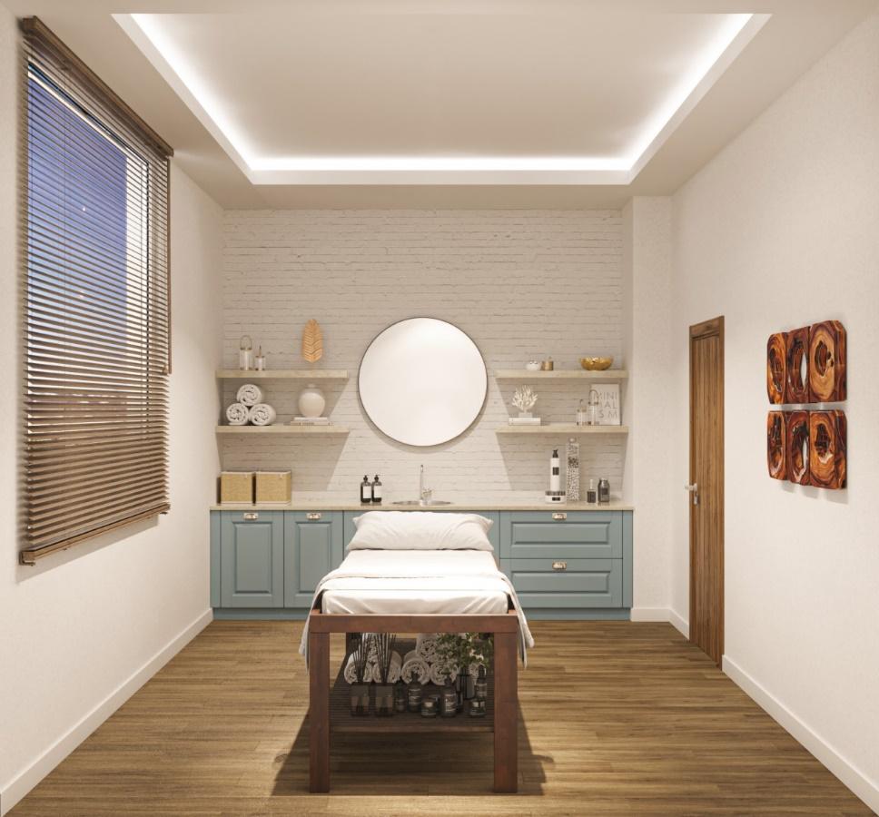 • Create ‘Blue Space’ with water features and deep ocean hues.