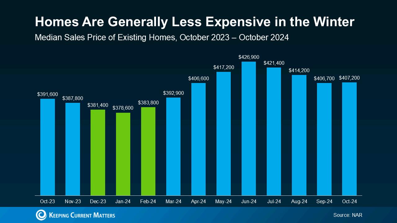 With less competition from other buyers and sellers who are morewillingtonegotiate,youmayseeslightlylowerpricestoo In fact, according to NAR, homes are typically about 5% less expensive now compared to when prices normally peak in the summer
