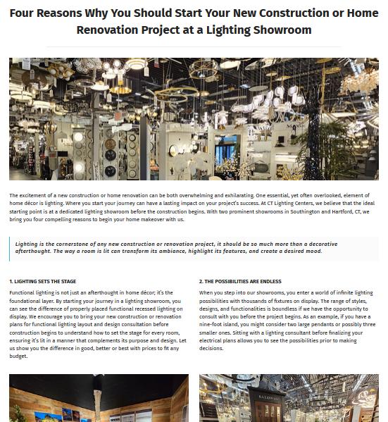 56 HBRA of Fairfield County | MAY 2024 Your Source for ANY Residential or Commercial Lighting Project SOUTHINGTON 860-621-7585 50 GRAHAM PLACE (I-84•EXIT 32) – next to Pilgrim Furniture HARTFORD 860-249-7631 312 MURPHY RD (I-91•EXIT 27) HOURS: M-F 8-6, Sat 9-5, Sun closed www.CTLighting.com