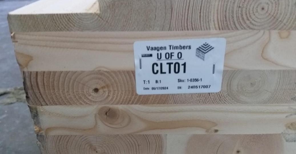 Page 1 of 16 ON: 1” Maxxon gypcrete 2000 Multifamily, Certainteed MemBrain vapor retarder, 3” of 3/8” limestone chip, Hempitecture 2” hemp fiber board, Vaagen Timbers 5-ply CLT 6.875” with plywood spline 3/4”x6” at the joint secured with #9x3” screws at 6” OC