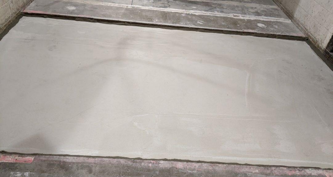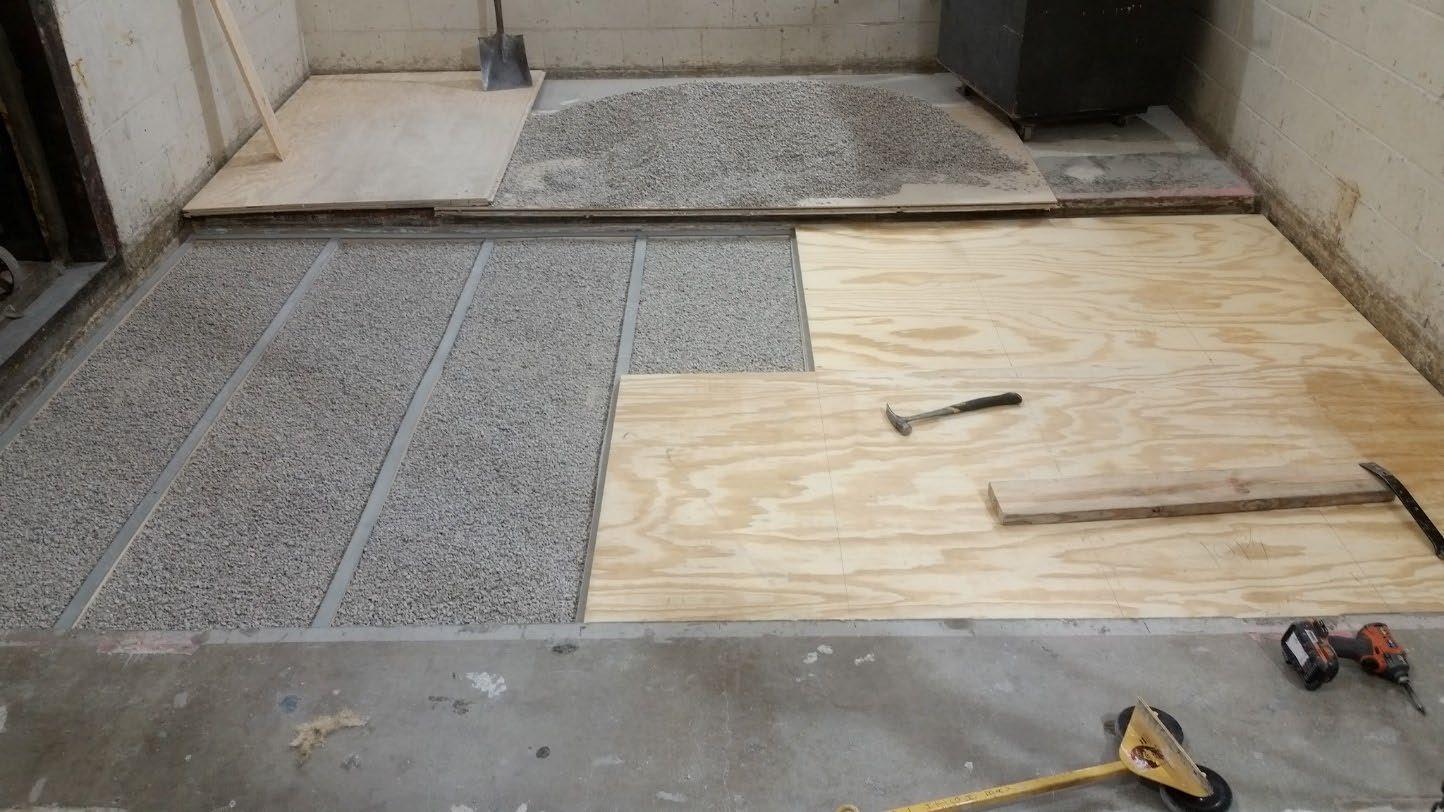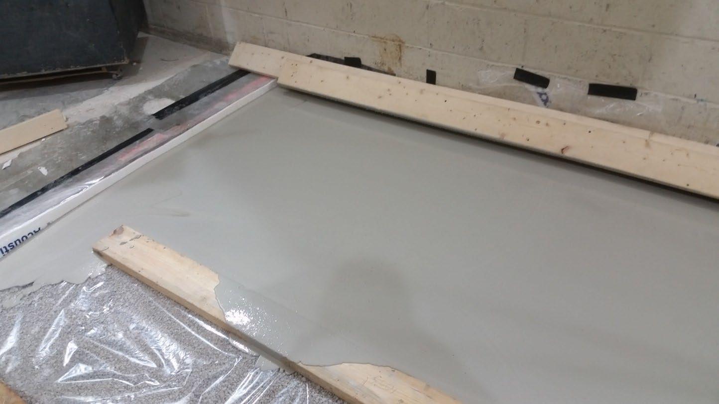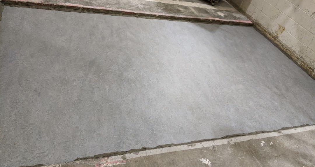 Specimen: Marmoleum Decibel adhered with Sustain 1195, 1” Maxxon gypcrete 2000 Multifamily, Certainteed