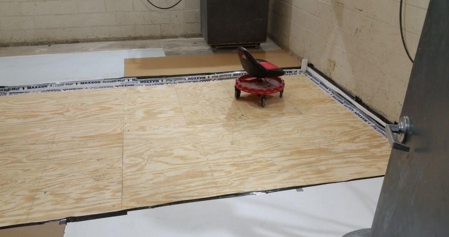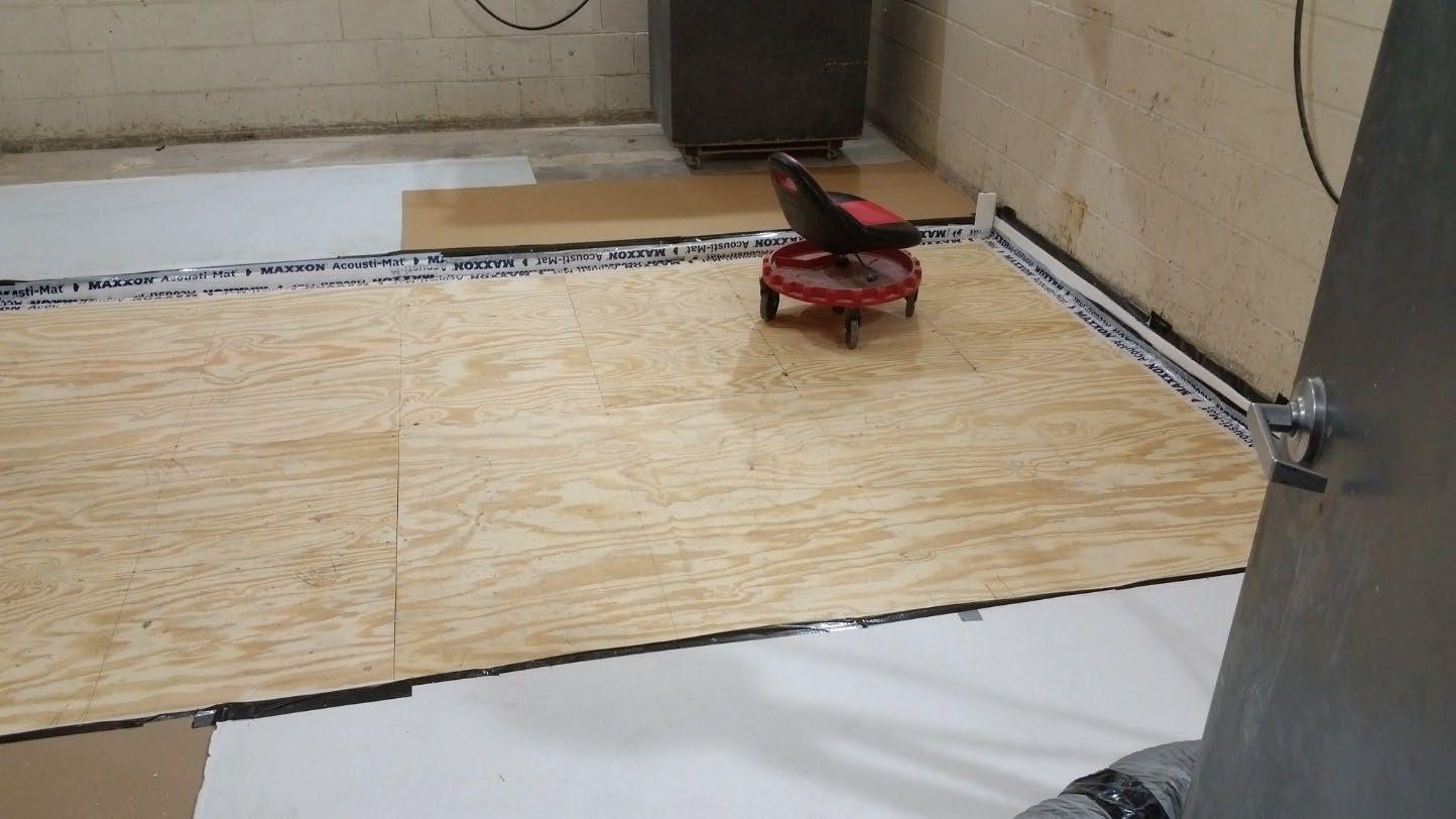 Specimen: 1” Maxxon gypcrete 2000 Multifamily, 1-1/8” T&G plywood subfloor screwed 24” OC with #9x3”, cavity filled with: HempWool Acoustibatt 3.5” hemp batt, 2x4 sleepers 24”OC with Rothoblaas Piano B acoustic strips stapled top/bottom, Vaagen Timbers 5-ply CLT 6.875” with plywood spline 3/4”x6” at the joint secured with #9x3” screws at 6” OC (See Full Report) Date