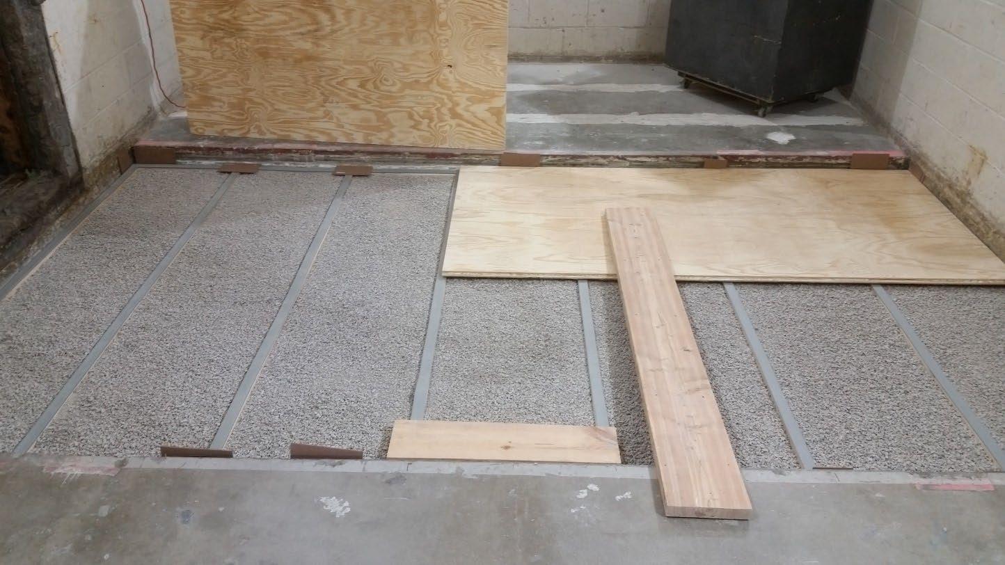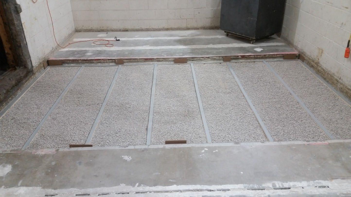 2x4 Sleepers, 24” OC with Rothoblaas Piano B acoustic strips stapled top/bottom