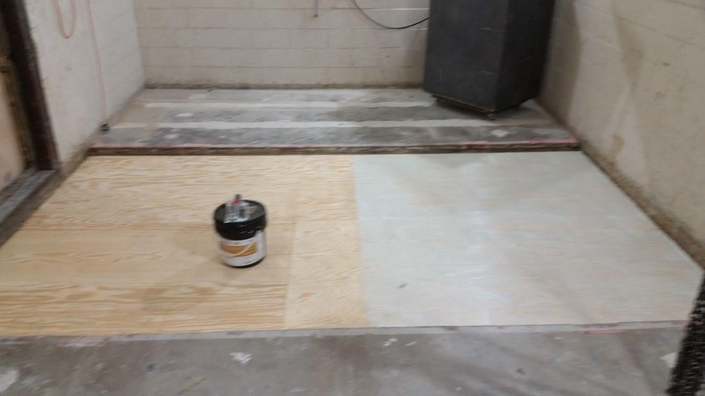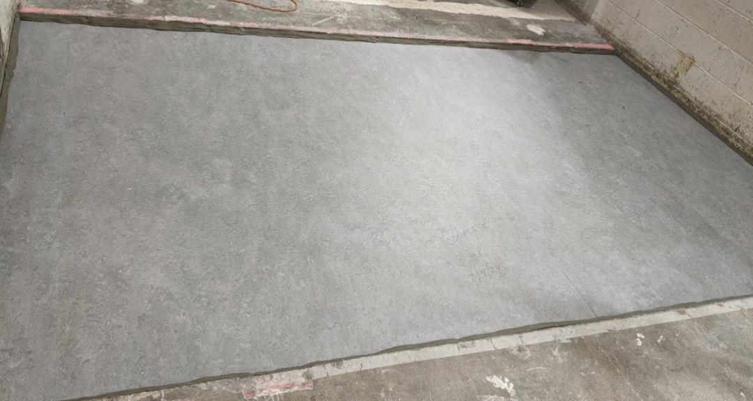 Installation: Troweled directly to gypcrete with a 1/16x1/16x1/16 square notch trowel Once troweled, adhesive was left “open” for 15 min to allow it to “tack” before flooring was installed.