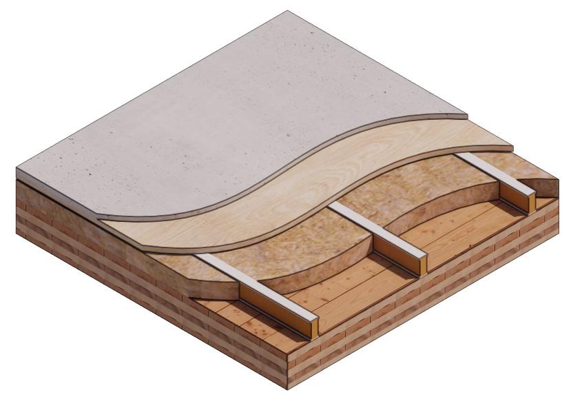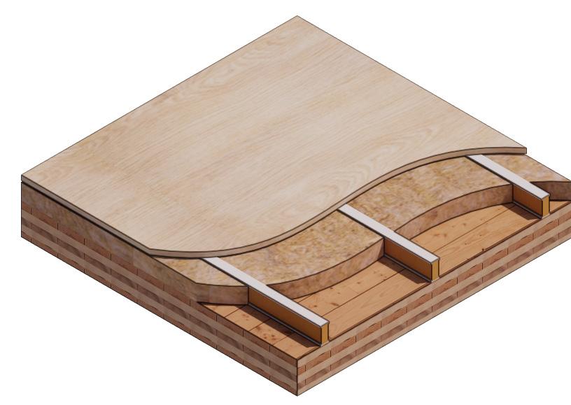 given their aesthetic properties, speed of construction, reduced weight and floor-to-floor heights; however, the monolithic bare wood material is resonant, which requires further acoustic isolation as a floor-ceiling assembly to meet jurisdictional requirements in many applications.