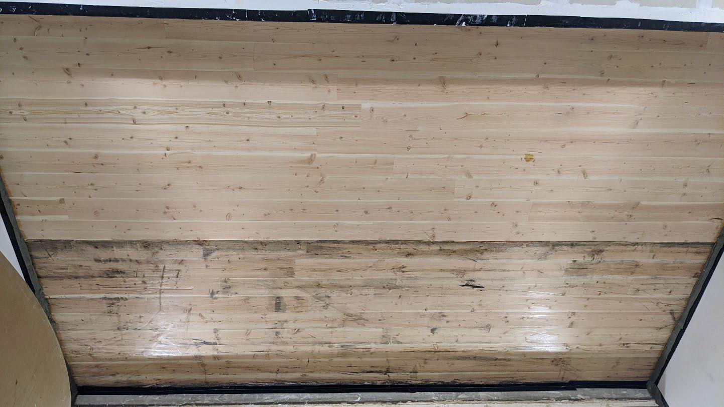 CONDUCTED: 2024-07-09 Page 1 of 20 ON: Marmoleum Decibel adhered with Sustain 1195, 1” Maxxon gypcrete 2000 Multifamily, 1-1/8” T&G plywood subfloor screwed 24” OC with #9x3”, cavity filled with: HempWool Acoustibatt 3.5” hemp batt, 2x4 sleepers 24”OC with Rothoblaas Piano B acoustic strips stapled top/bottom, Vaagen Timbers 5-ply CLT 6.875” with plywood spline 3/4”x6” at the joint secured with #9x3” screws at 6” OC