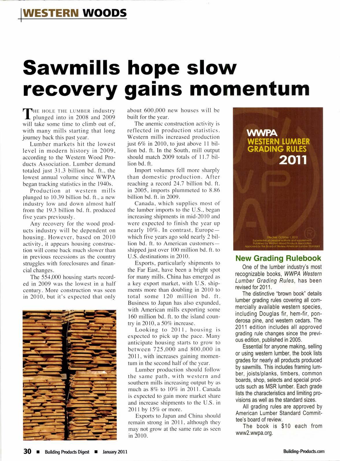 One of the lumber industry's most recognizable books, WWPA Western Lumber Grading Ru/es, has been revised for2011.