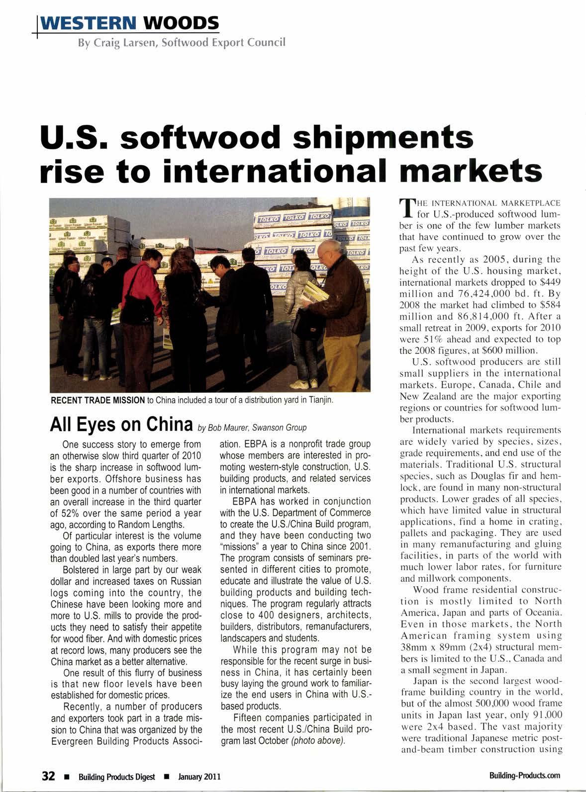 Recently, a number of producers and exporters took part in a trade mission to China that was organized by the Evergreen Building Products Associ-