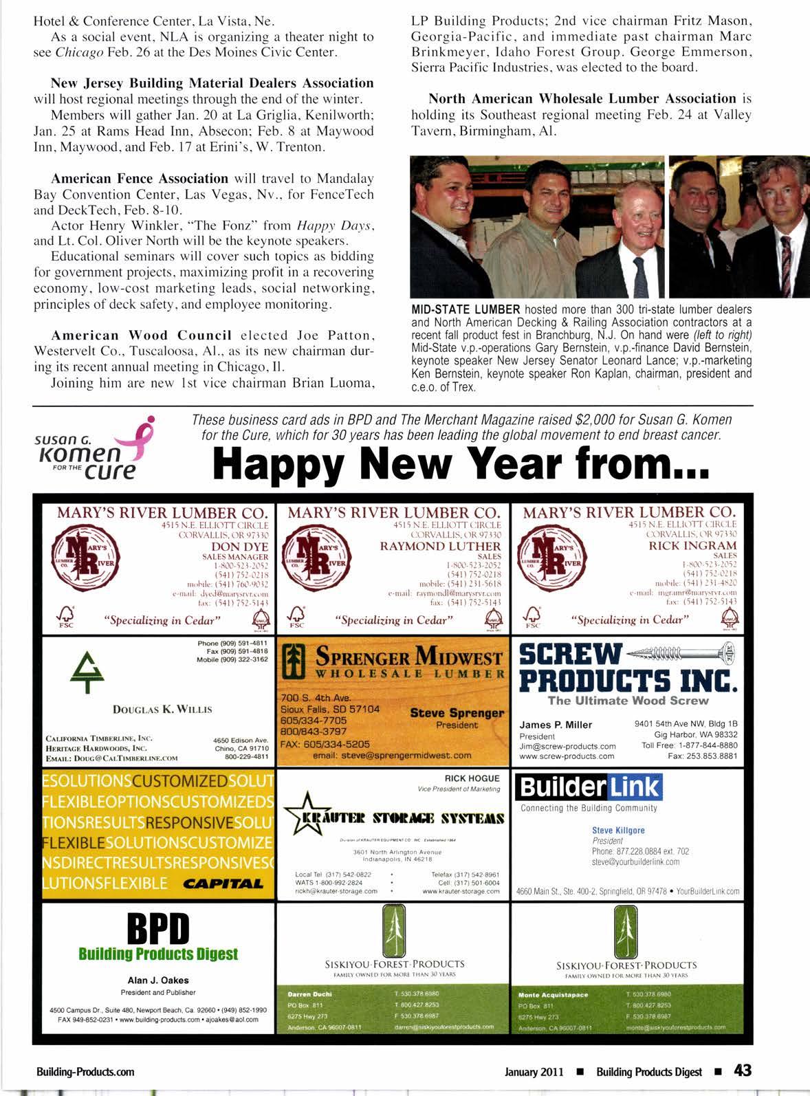 These business card ads in BPD and The Merchant Magazine raised $2,000 for Susan G. Komen for the Cure, which for 30 years has been leading the global mlvement to end breast cancer.