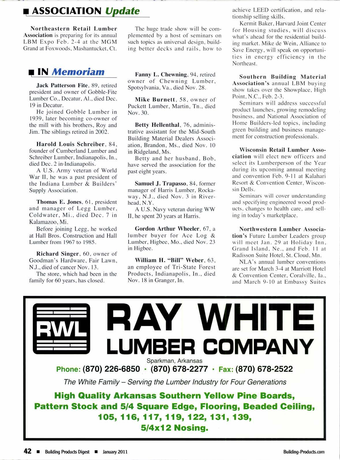 Thomas E. Jones, 61, president and manager of Legg Lumber, Coldwater, Mi., died Dec. 7 in Kalamazoo, Mi.