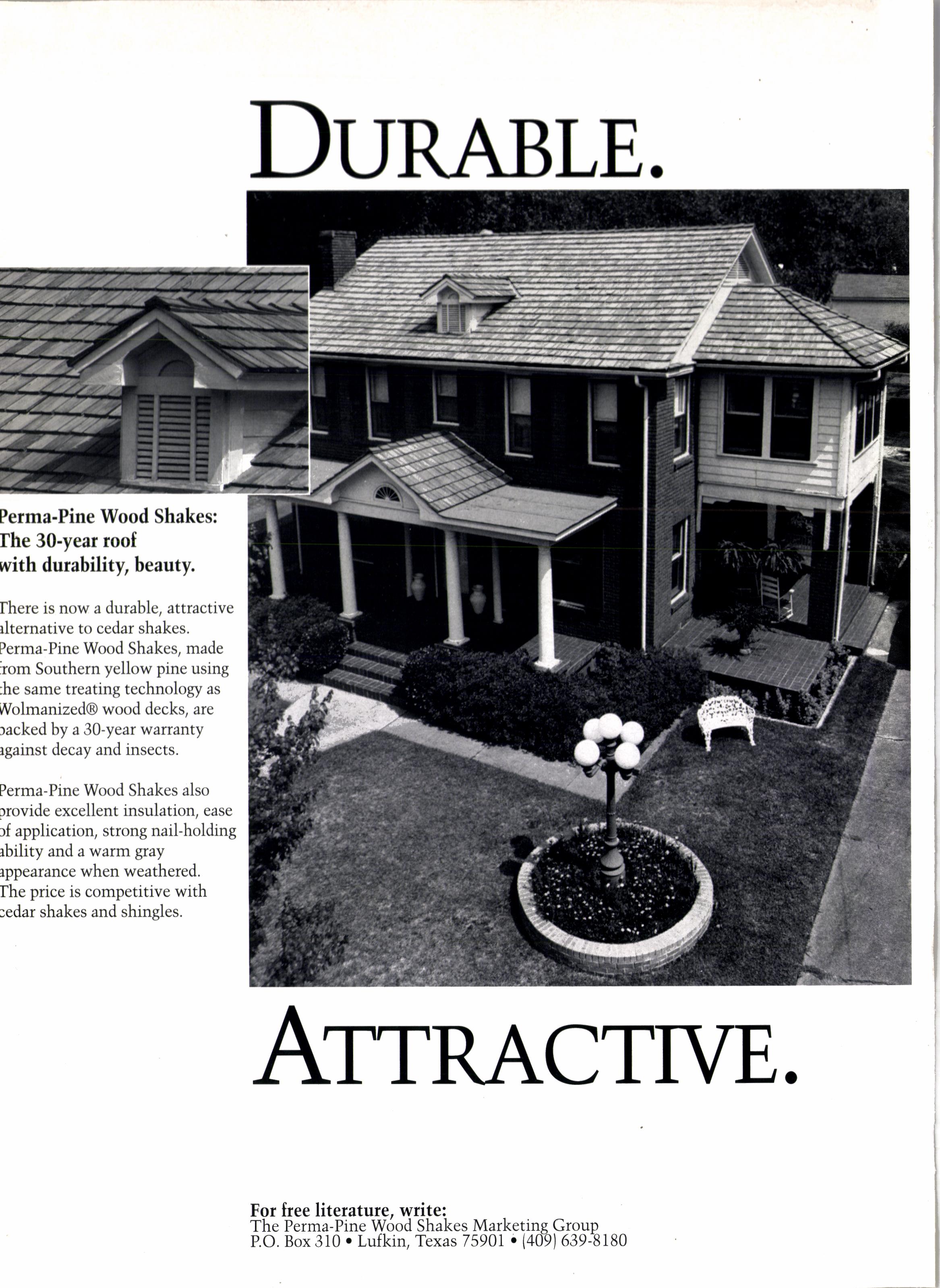 ATTRACTTVE. For free literature, write: The Perma-Pine Wood Shakes Marketins Group
