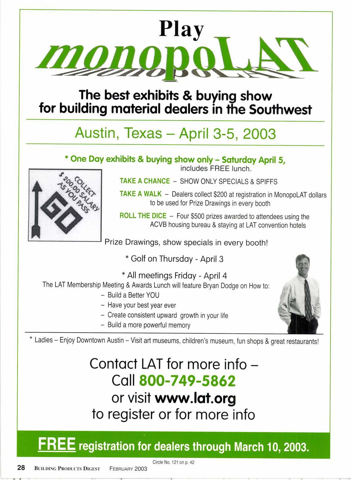 TAKE A WALK - Dealers collect $200 at registration in MonopoLAT dollars to be used for Prize Drawings in every booth