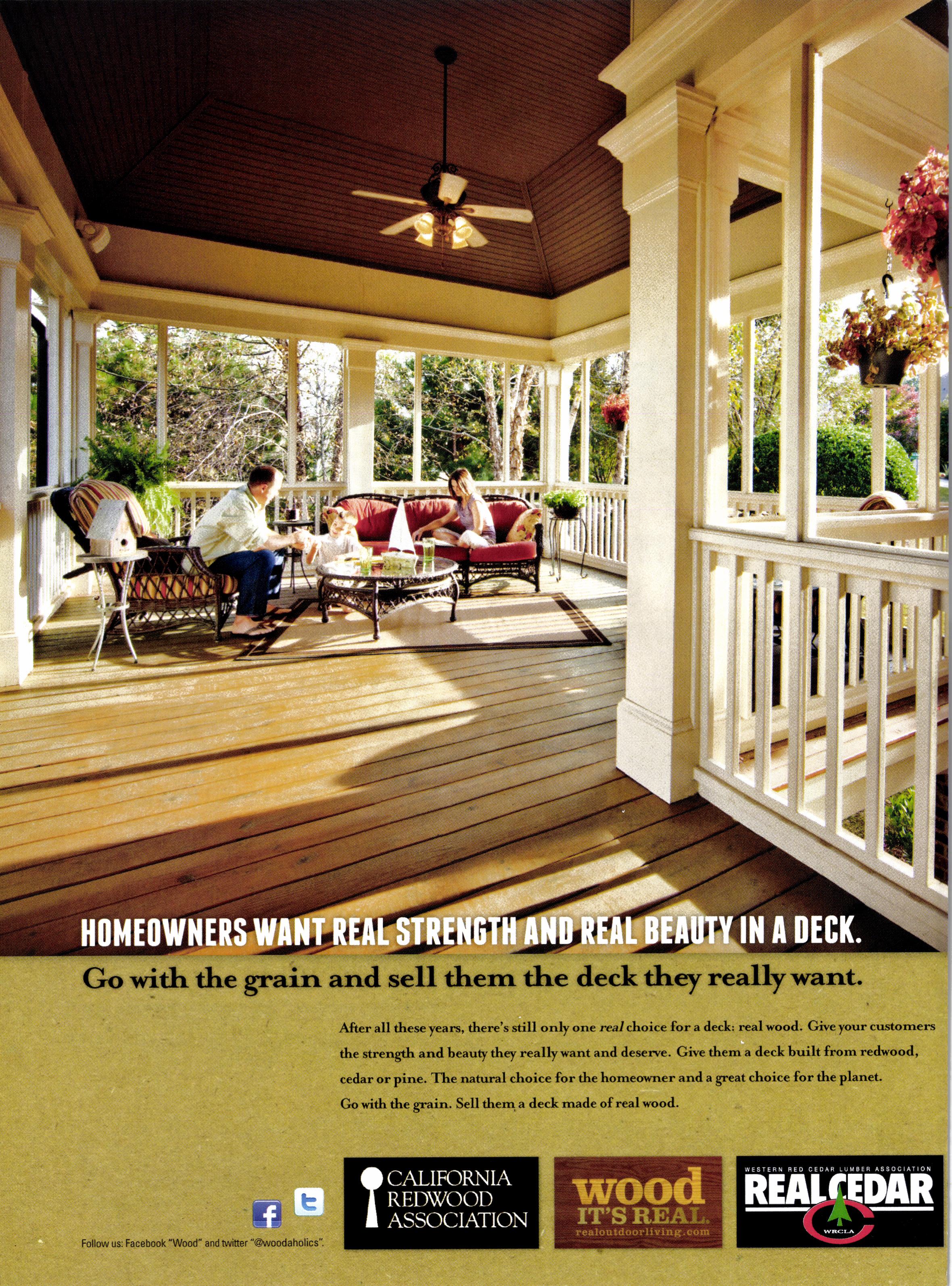 ,* ;i i r: f,. {ffi I I l: | ; ill!ll lllr zr . -d ##' "'1 .1^_" t'F dfr- I r{1. .' -. \tfu | &i&s ." r' I nm' mn llr EU[ro \ '{fer ff **--a**: ryrr't"\*!' I t \g I {}i I xu Follovr us: Facebook "W0od" anc hrilter "@-\Vcodaholics" After all these years, there's still only one rc;ri choice for a deck, real wood, Give your ctrstonrers the strength and beaury they really want :rnd desene. Give them a deck built from redwood, cedar or pine. 'l he natural choice for tle homeo*'ner and a great choice for the planet. Oo with the grain. Sell d.em a deck made of real w'ood. ?.Ei*:*": Go with the grain and sell thern the deck they reallywant.