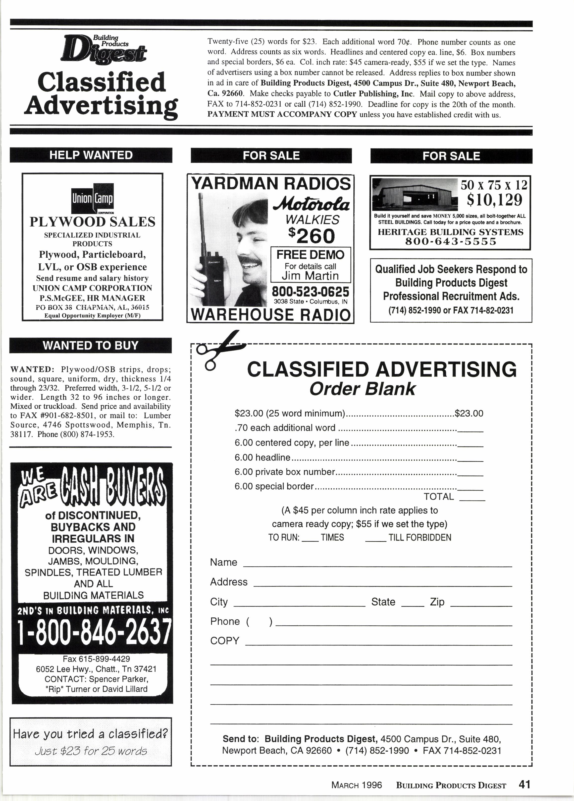 Seconds In Building Materials............41