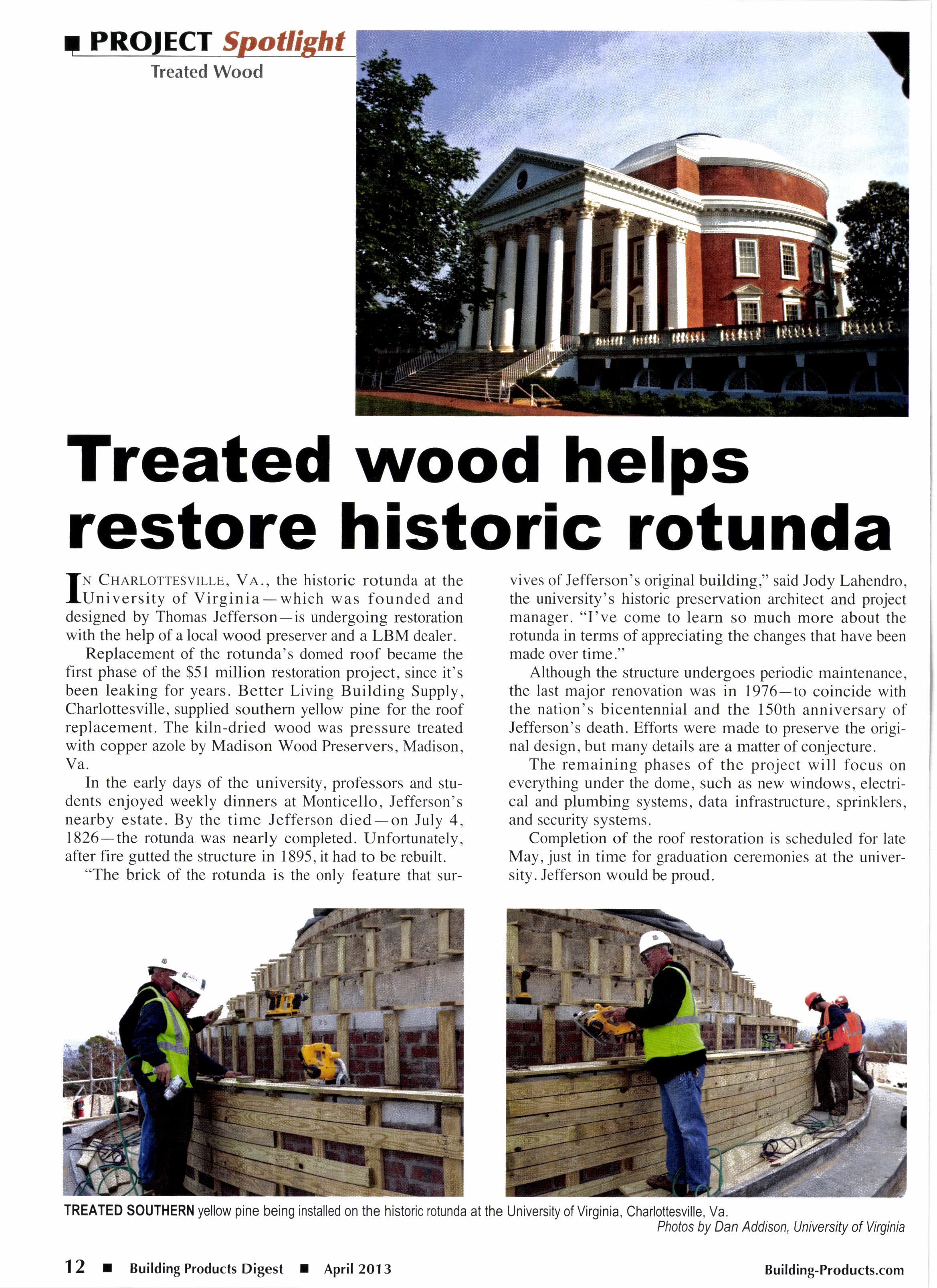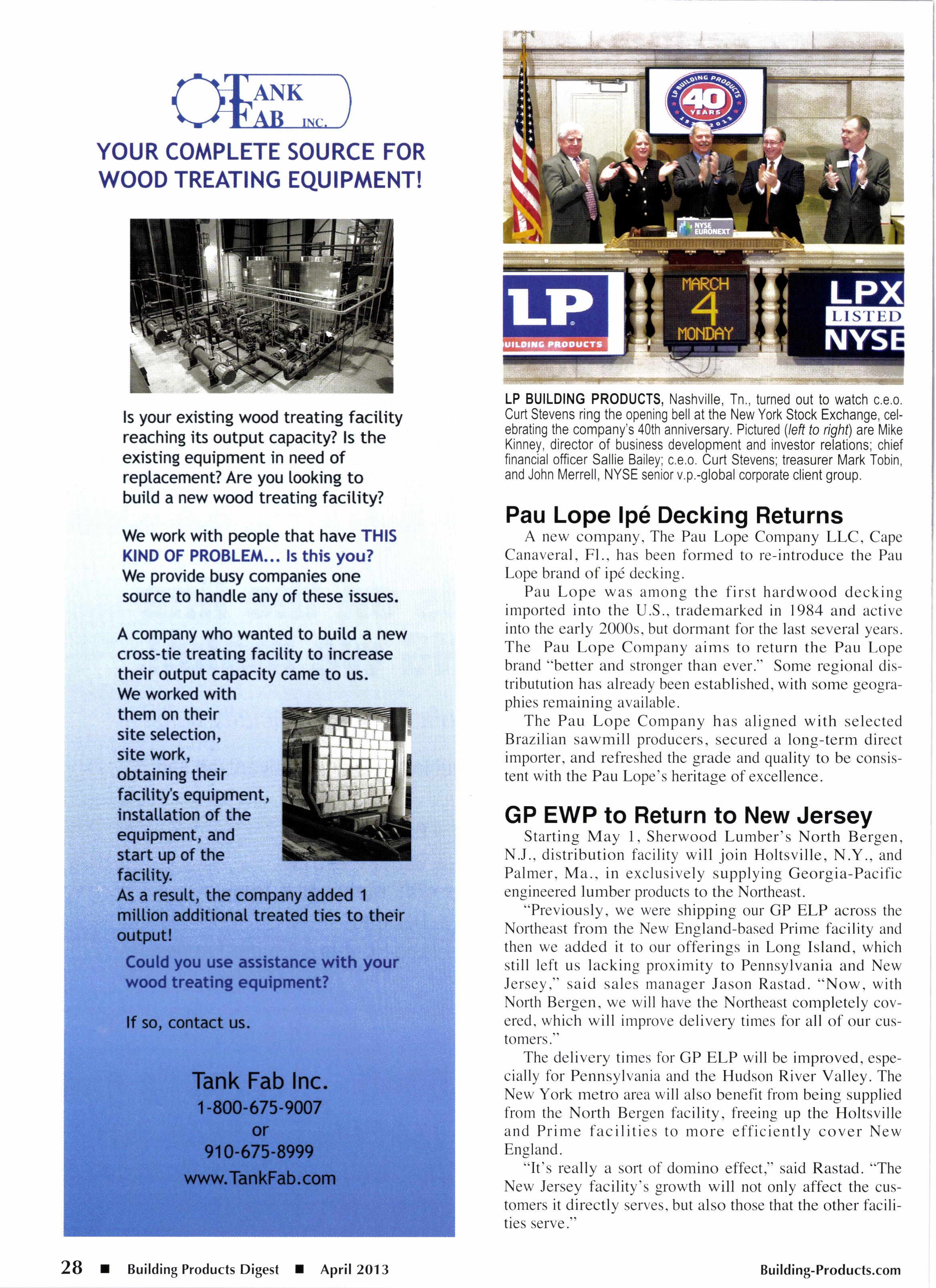 For the future, said sales manager Kersten Russell, the company is eyeing the commercial roofing industry and "is currently working on a laminated product that will provide the durability of our hardwood products and the structural strength of our softwood products all at a extremely competitive price."