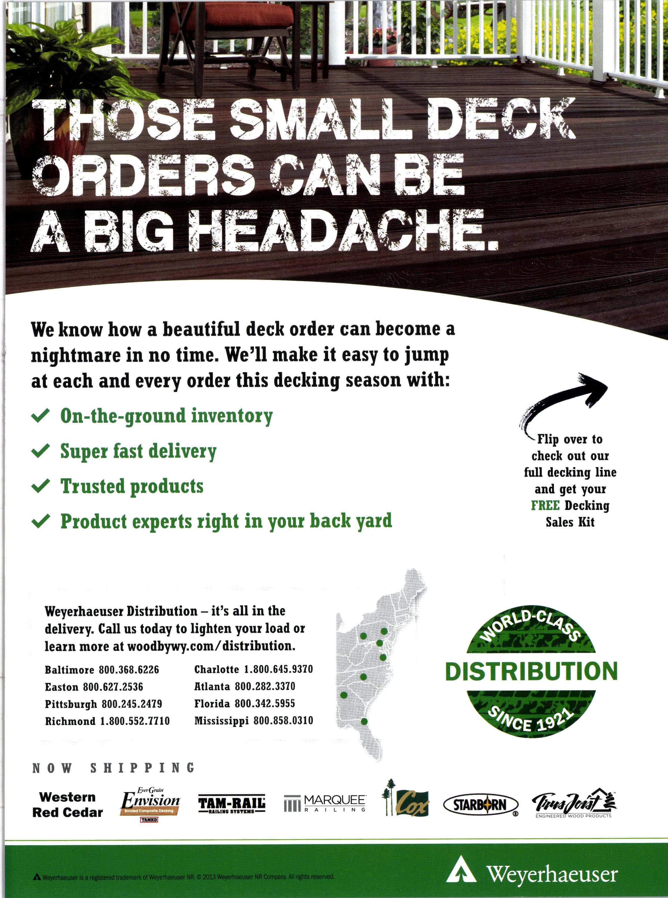 used. Ultimately, wood still remains the predominate product in the decking and railing category, even after the gains composite decking and railing has made in recent years."