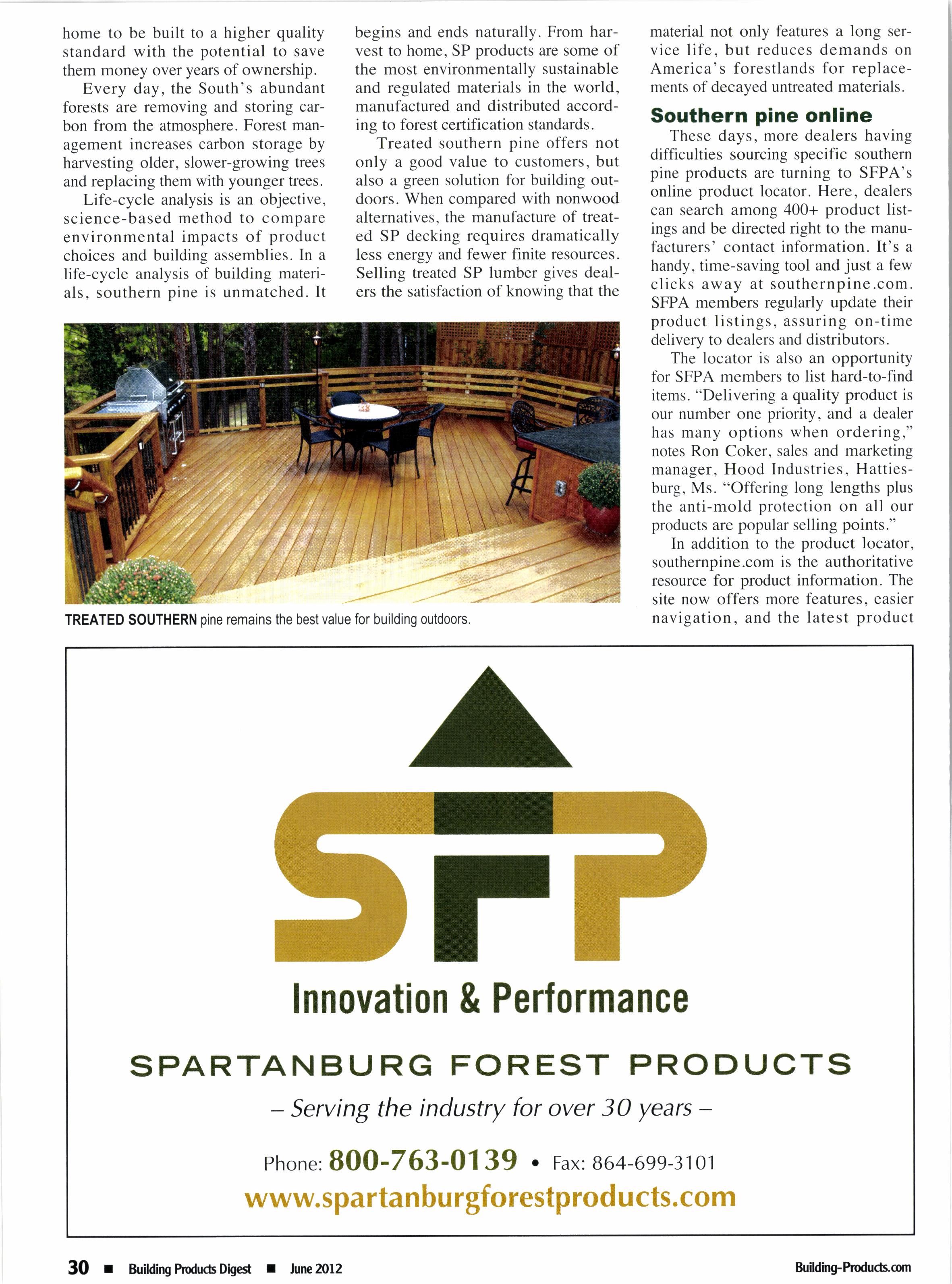 In addition to the product locator, southernpine.com is the authoritative resource for product information. The site now offers more features, easier navigation, and the latest product details. Within its publications section, SFPA's lumber library is a collection of helpful titles that dealers can rely on to help educate themselves and their customers about the proper selection and use of SP materials.