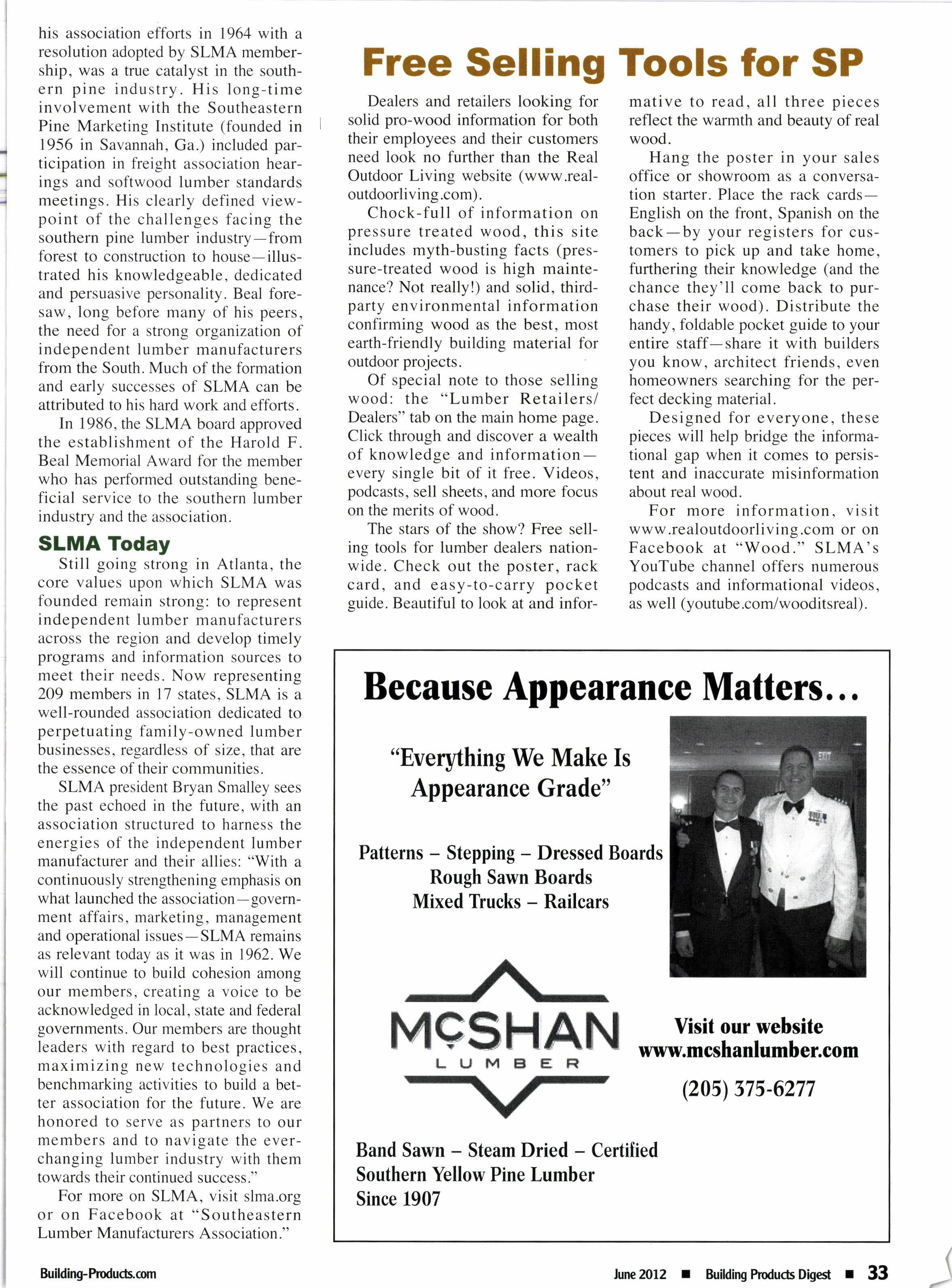 For more on SLMA, visit slma.org or on Facebook at "Southeastern Lumber Manufacturers Association."