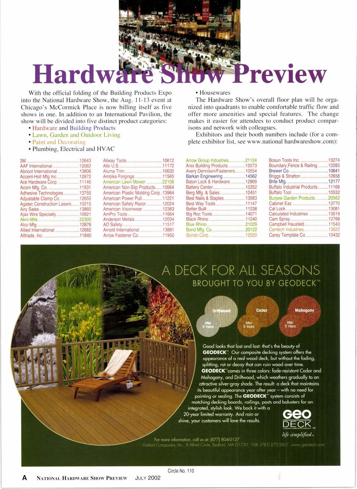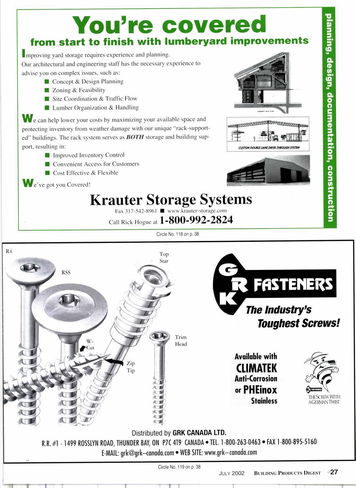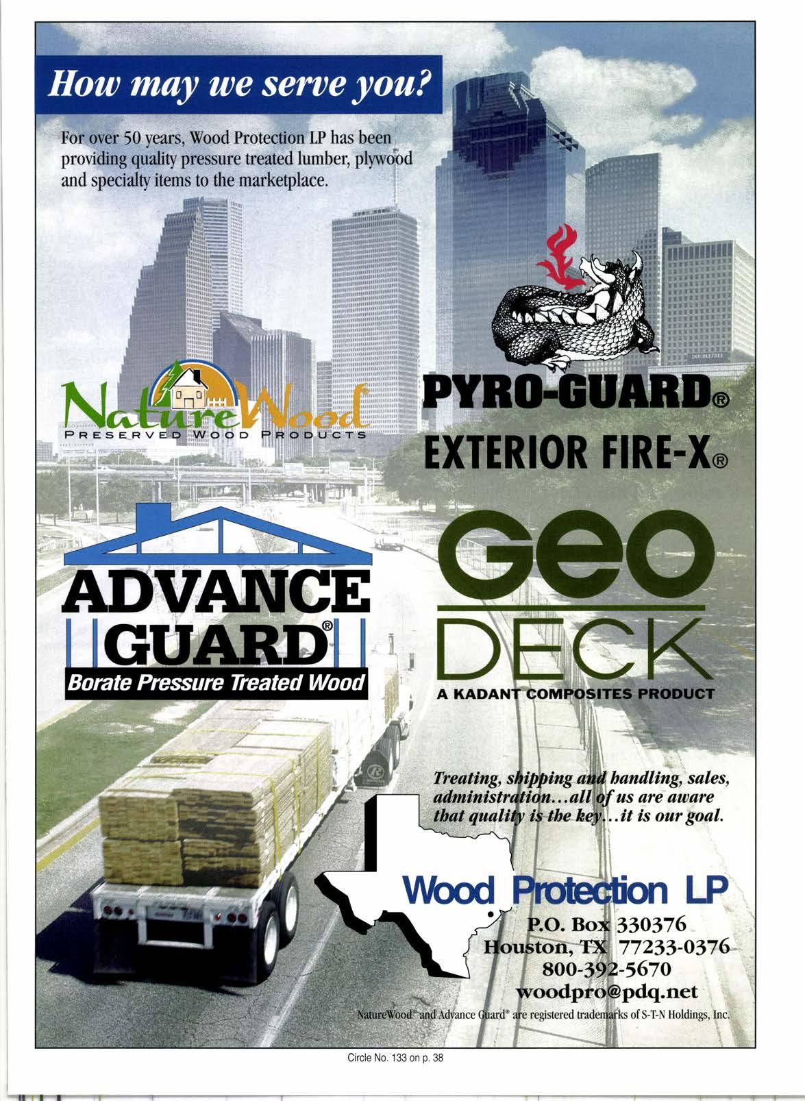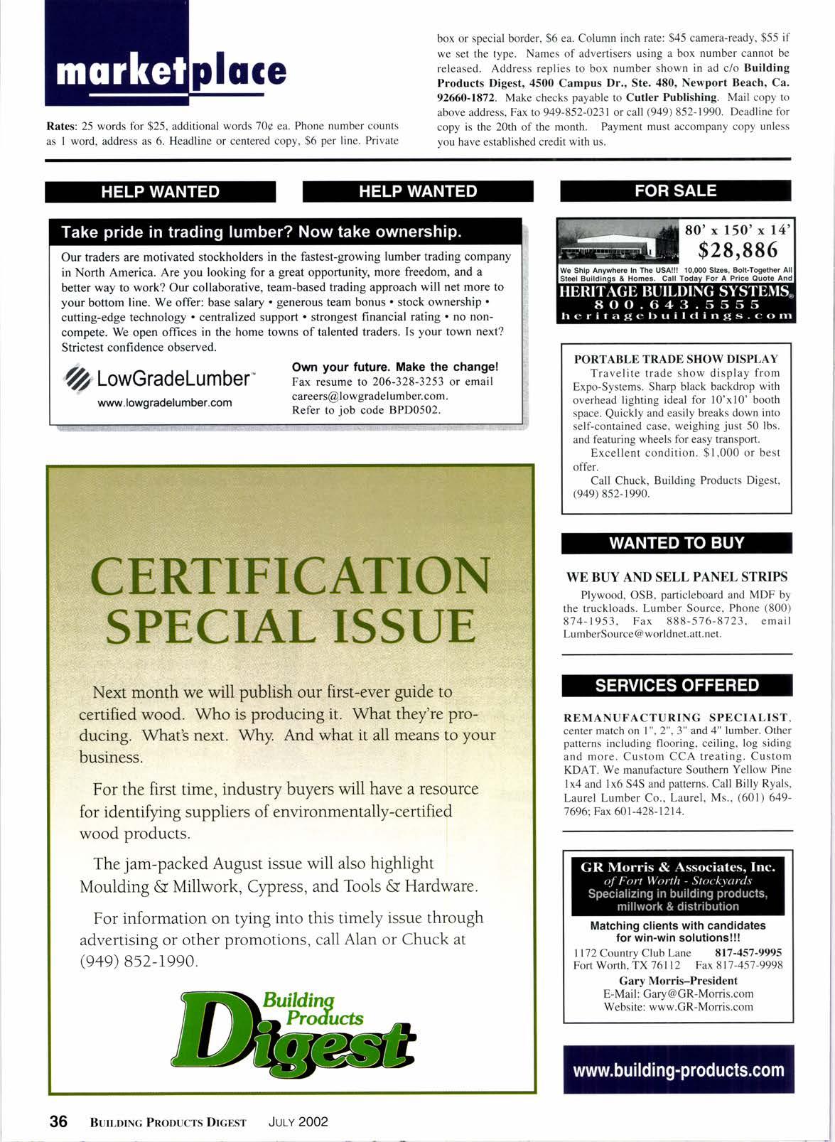 ,,,,r1, JULY 2OO2 Treoted wood onswers Survey shows high product 0tteplonce. '[f iirq** g Reloods cim to do it oll Activistg crosh llAW[A's po]ty VOLUME 21, NO.5 0bitusries Clossified lUlorketploce Buyers'Guide Advertisers Index IAX Response lorm l0 Are otlengineered lumber produtts treoled equol? 12 more engineered wood odvite Second $eo, Benefits of on EWP checklist. 34 36 37 38 38 @ All Exhibits Building Products Digest