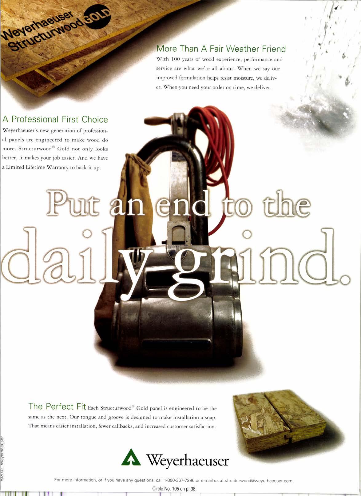 A \W'eyerhaeuser For more information, or if you have any questions, call 1-800-367-7296 or e-mail us at structurwood@weyerhaeuser.com Circle No. 105 on p. 38 T' C -TTTTT]T. TTT'T-